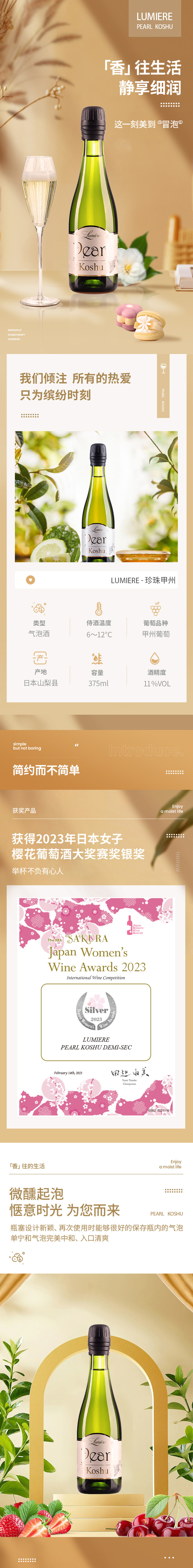 珍珠甲州 白气泡酒 2023年日本女子樱花葡萄酒银奖 Lumière乐蜜迩 泡沫细润 入口清爽 /鲁米埃尔甲州葡萄酒