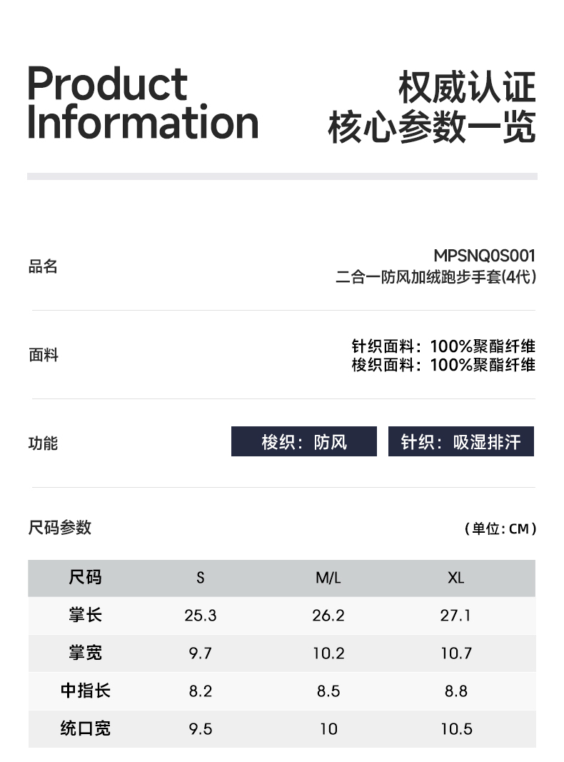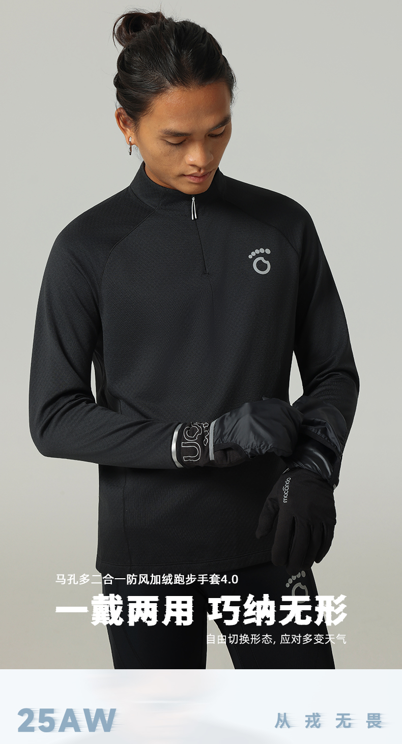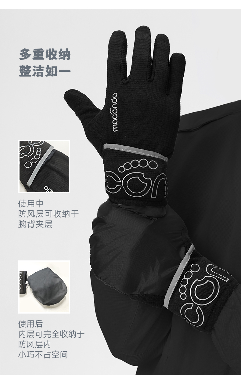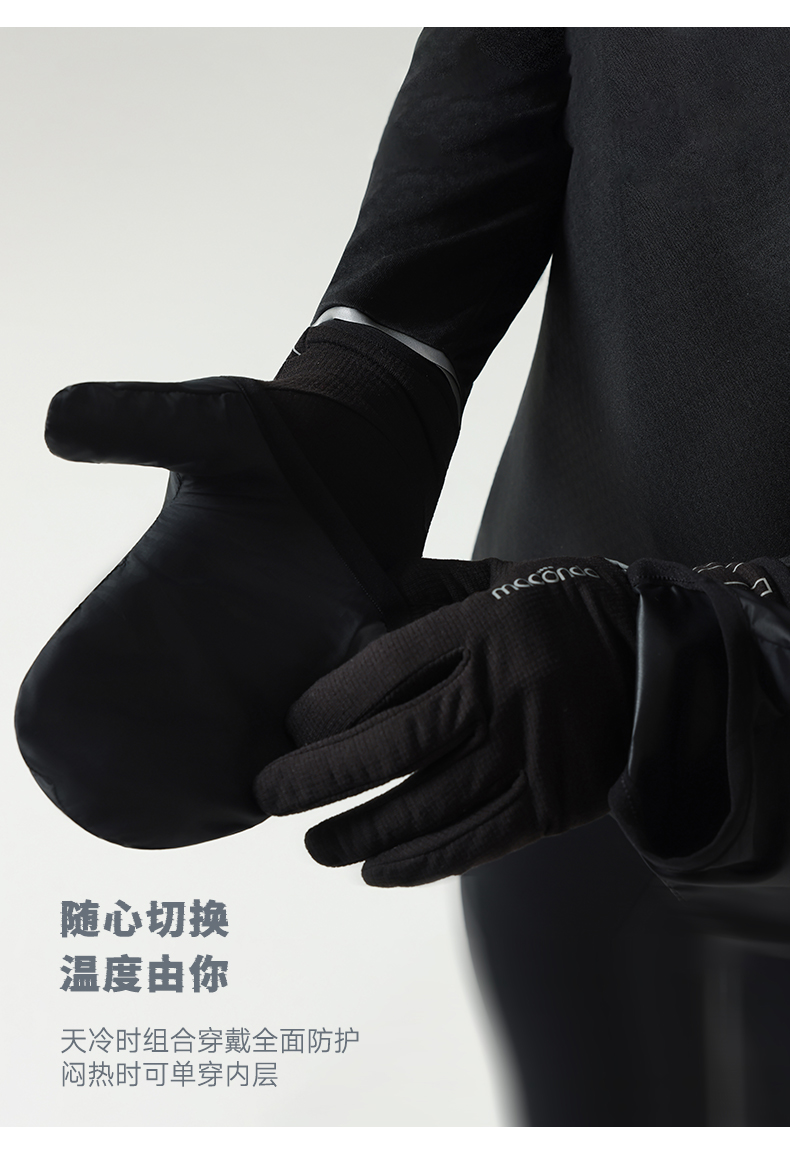原创单品丨二合一防风加绒跑步手套4代 外出梭织防风 内层摇粒绒锁温 防风层可收纳腕背 食拇指可触屏