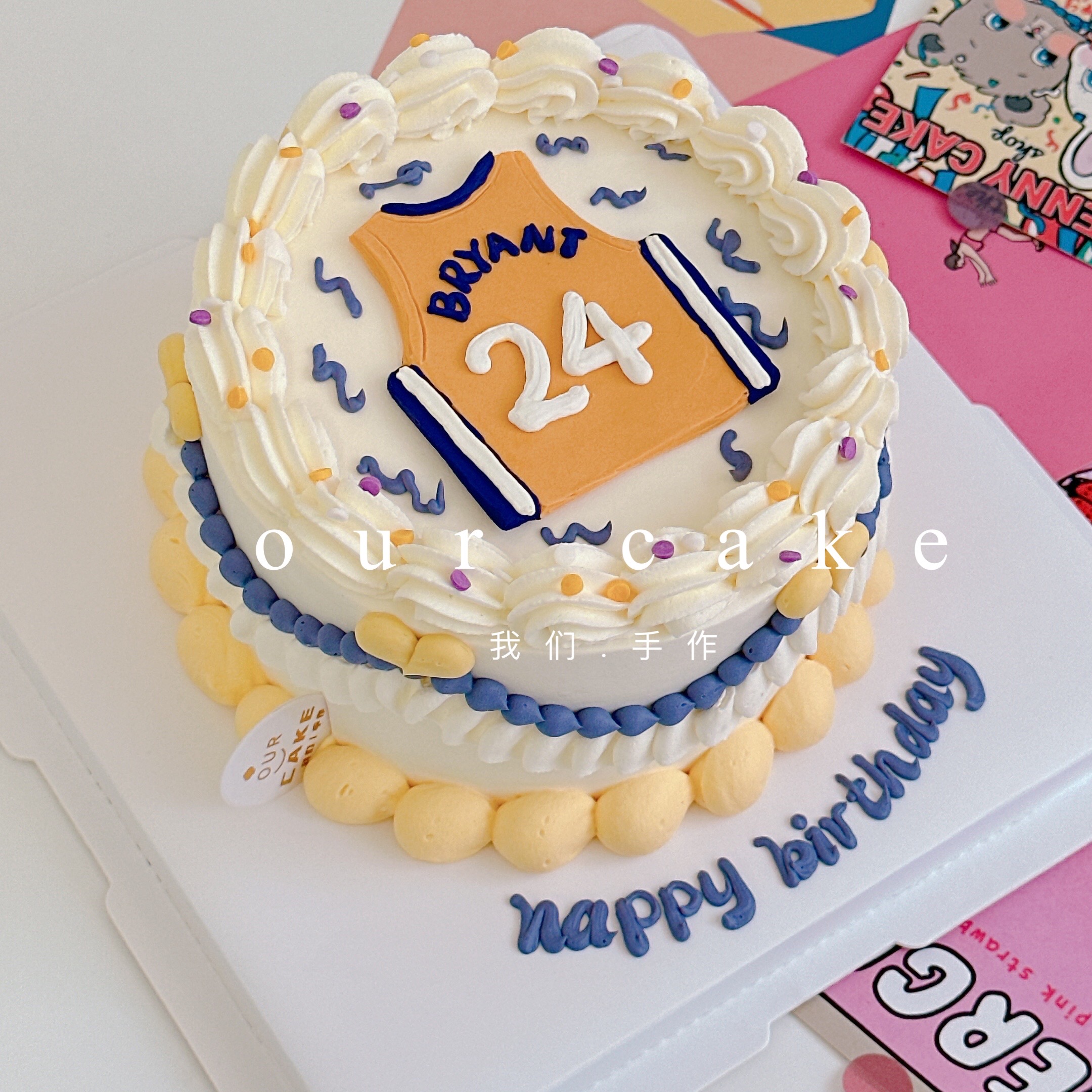 球衣手绘复古蛋糕手绘蛋糕-低糖处理无添加