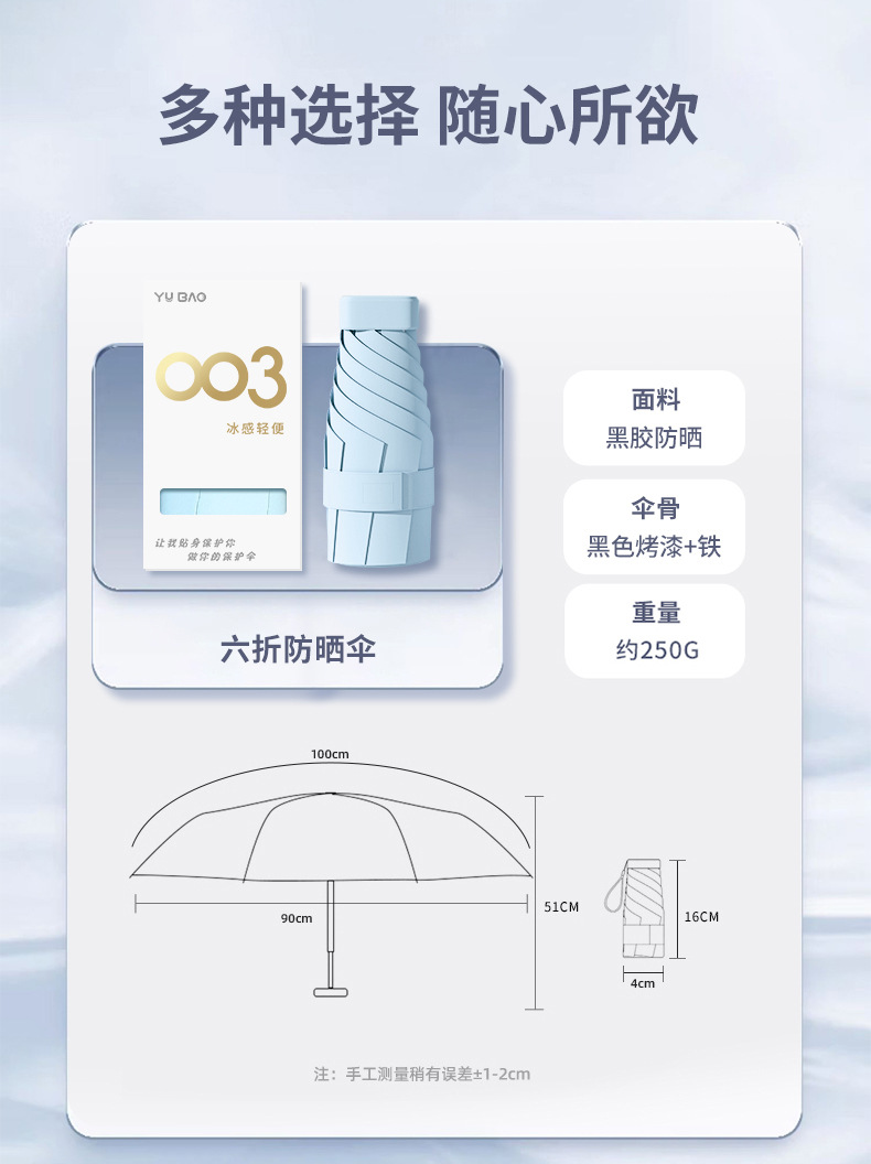 「礼盒套装!轻薄小巧防晒」夏季六折雨伞遮阳伞创意伞具轻薄迷你居家日用便携太阳伞轻便扁伞防晒伞