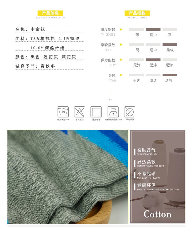 【19元6双】5-7岁丨中童四季精梳棉短袜子 舒适柔软【723209】