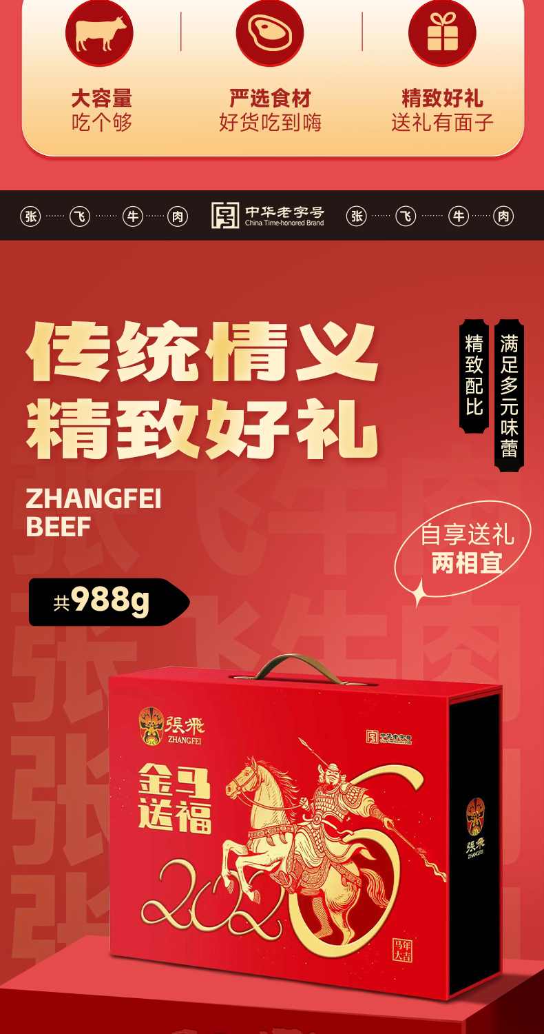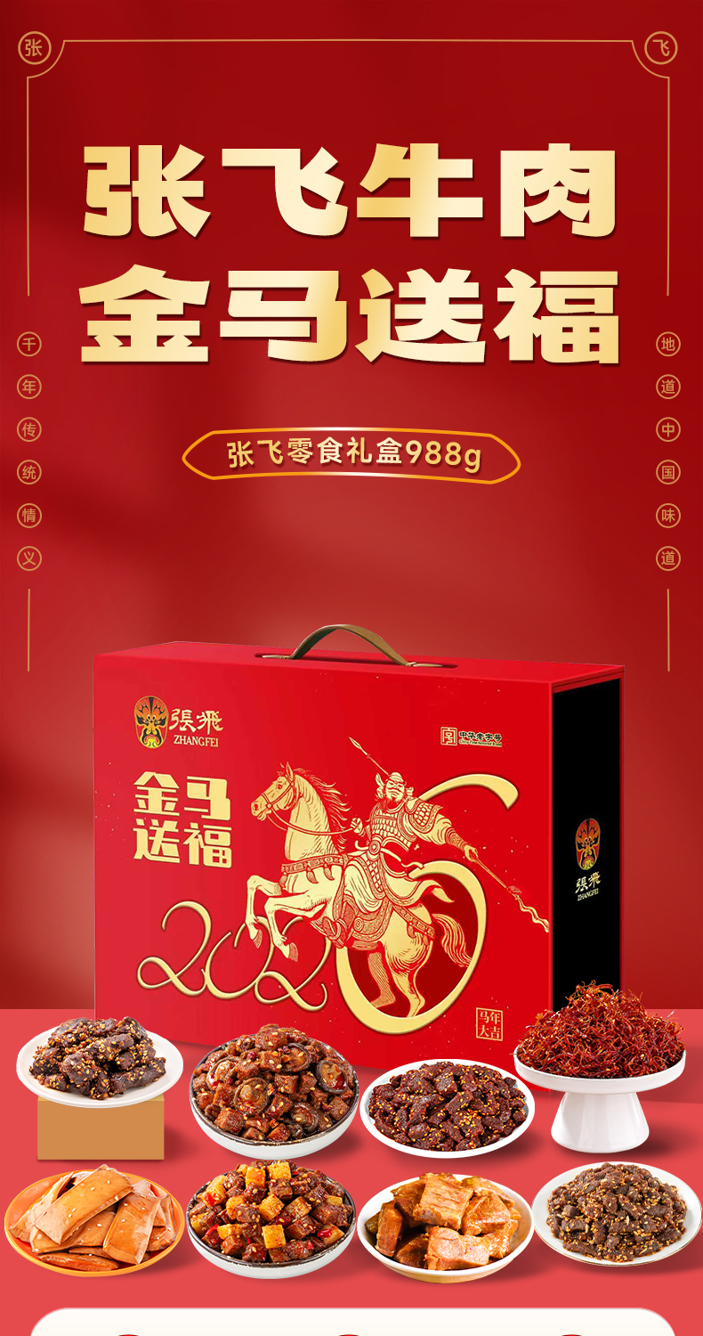 张飞牛肉骁骑贺岁礼盒-988g【年货】JCT