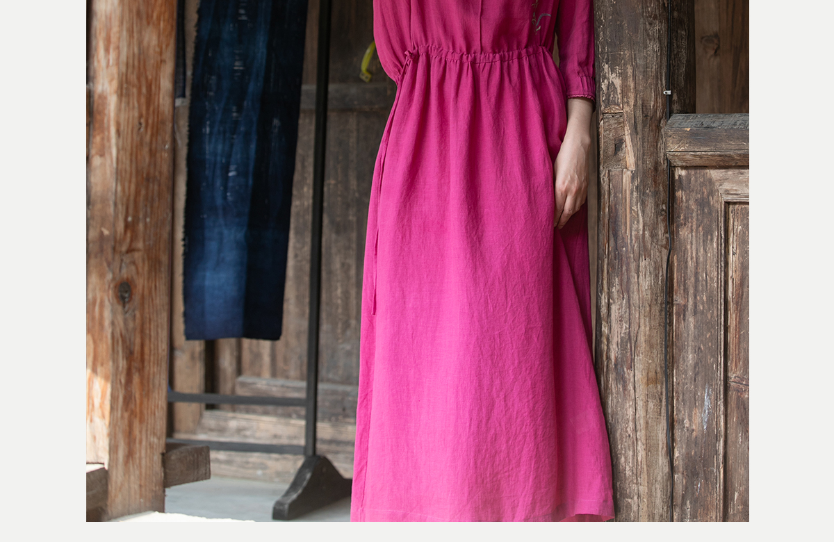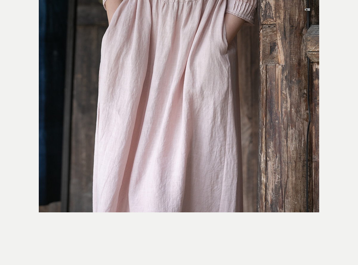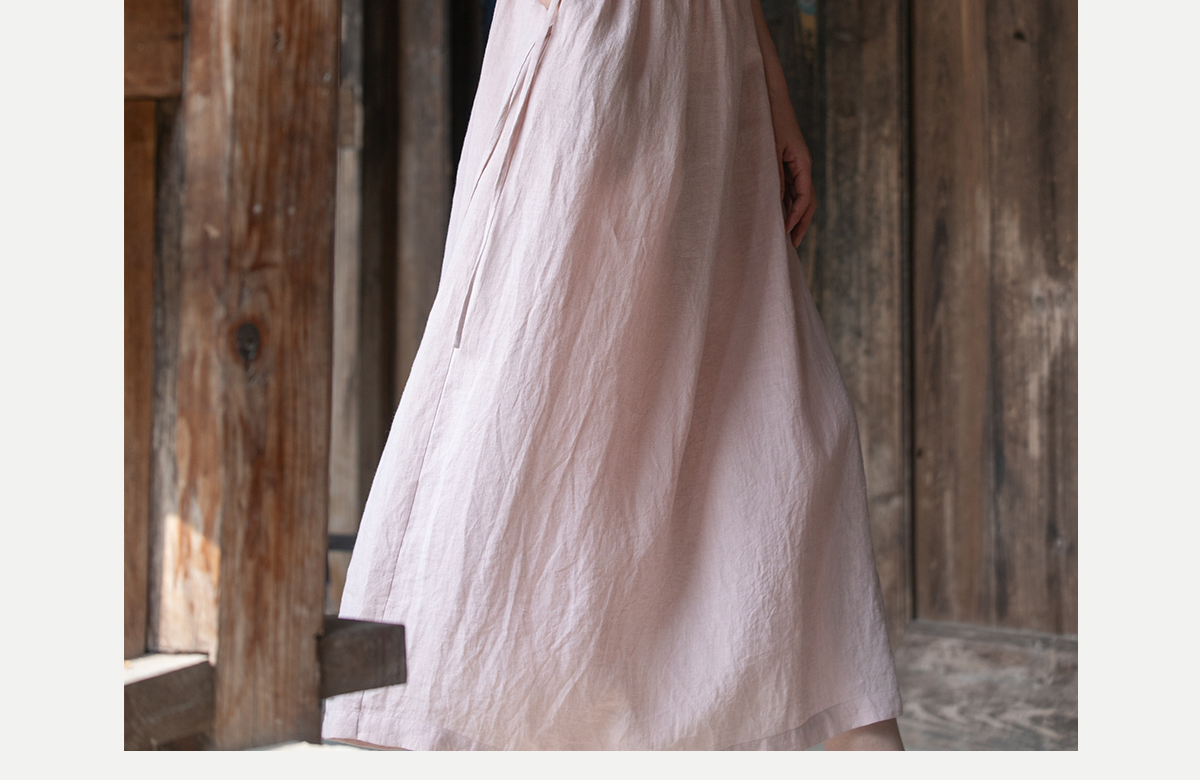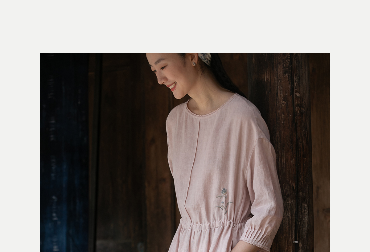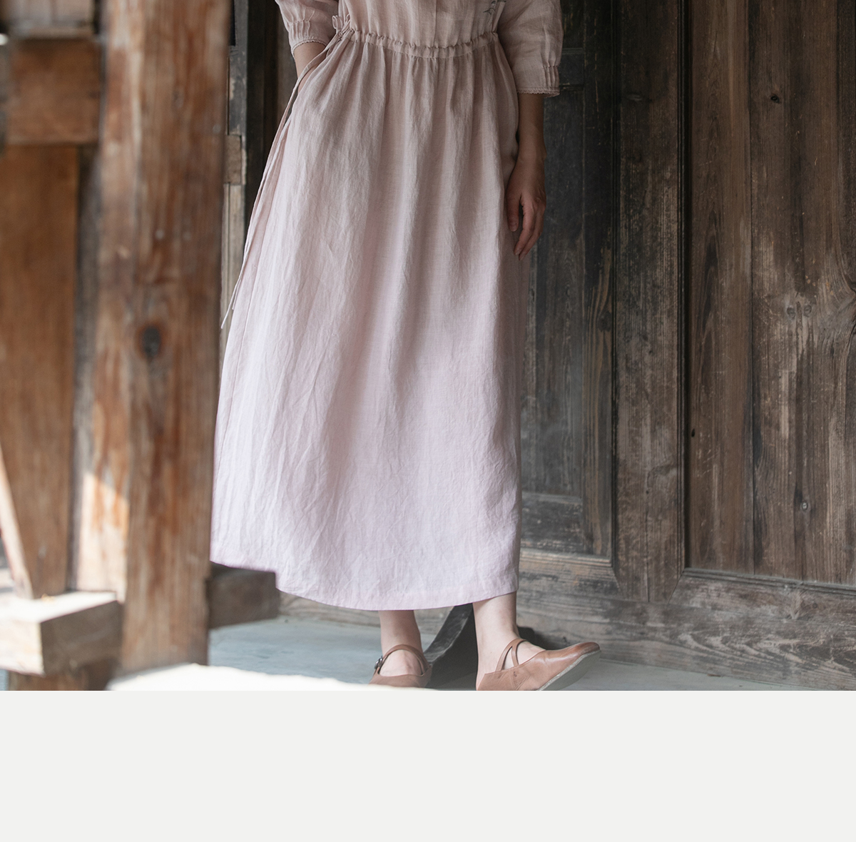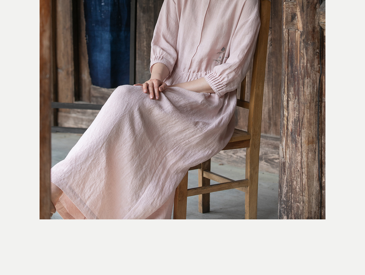 牧衣游原创 汉麻手工刺绣连衣裙宽松轻薄柔软抽绳圆领长裙 无极
