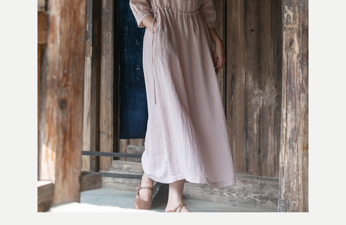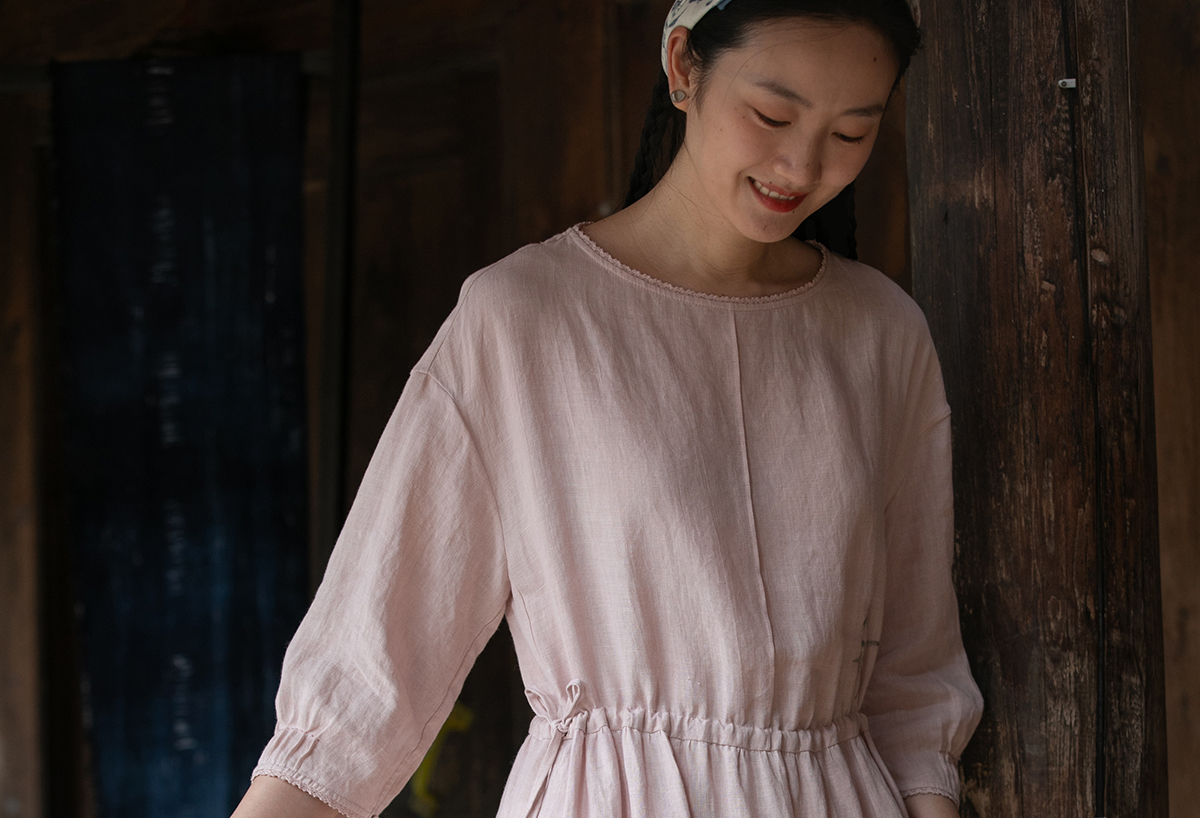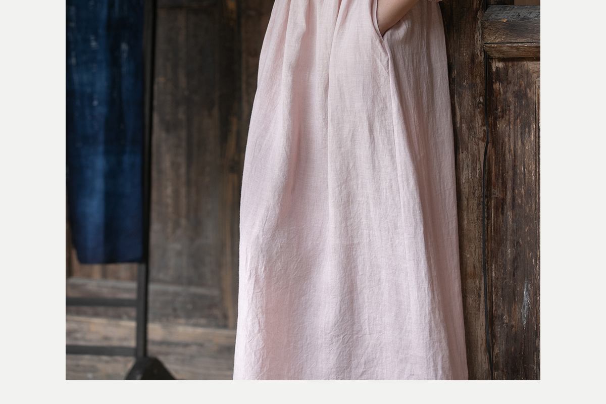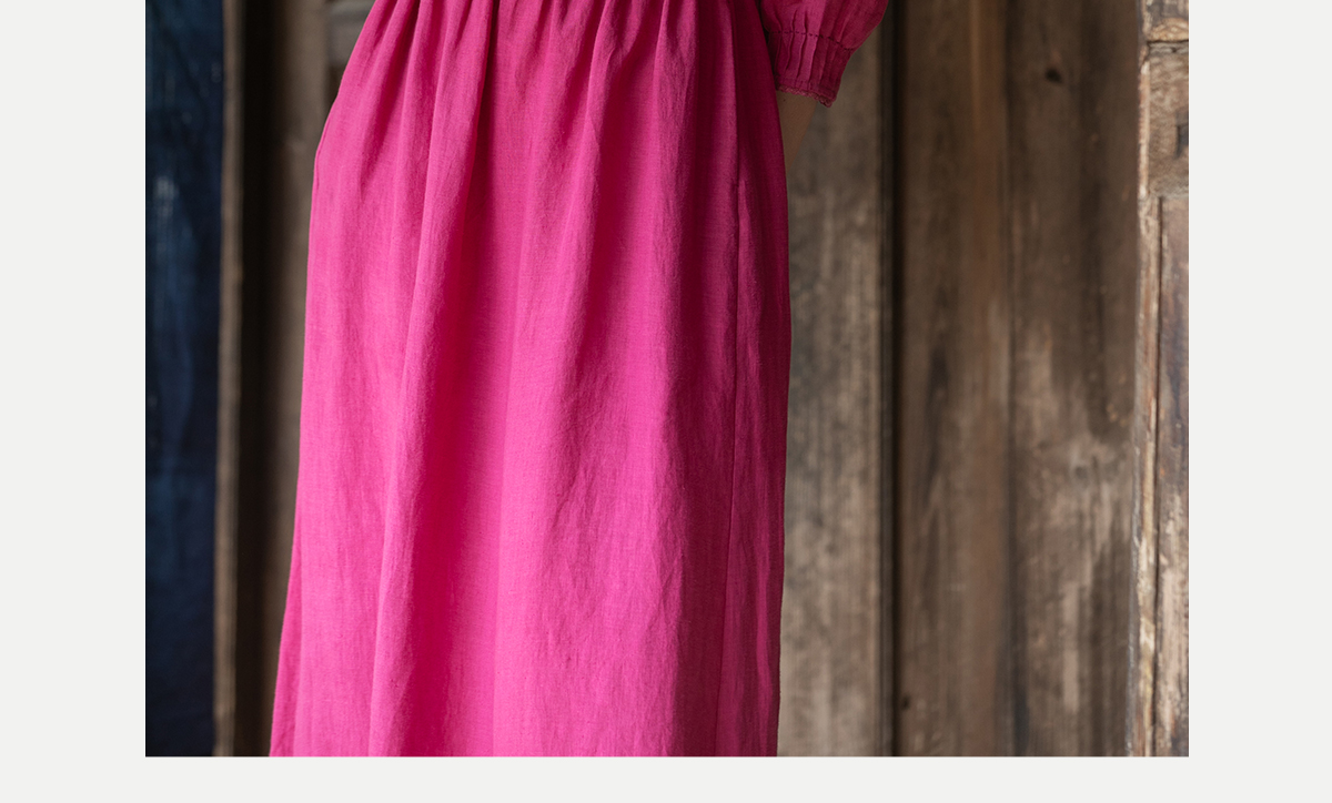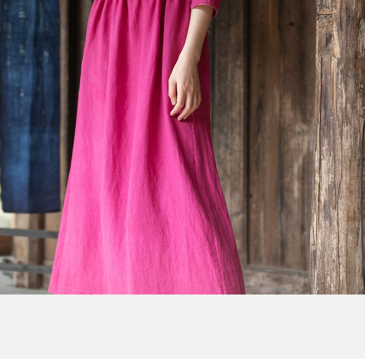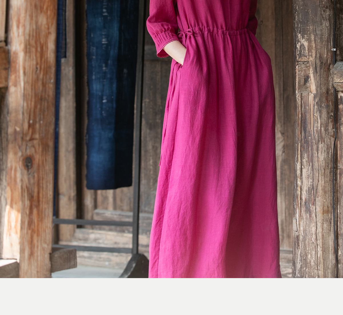 牧衣游原创 汉麻手工刺绣连衣裙宽松轻薄柔软抽绳圆领长裙 无极