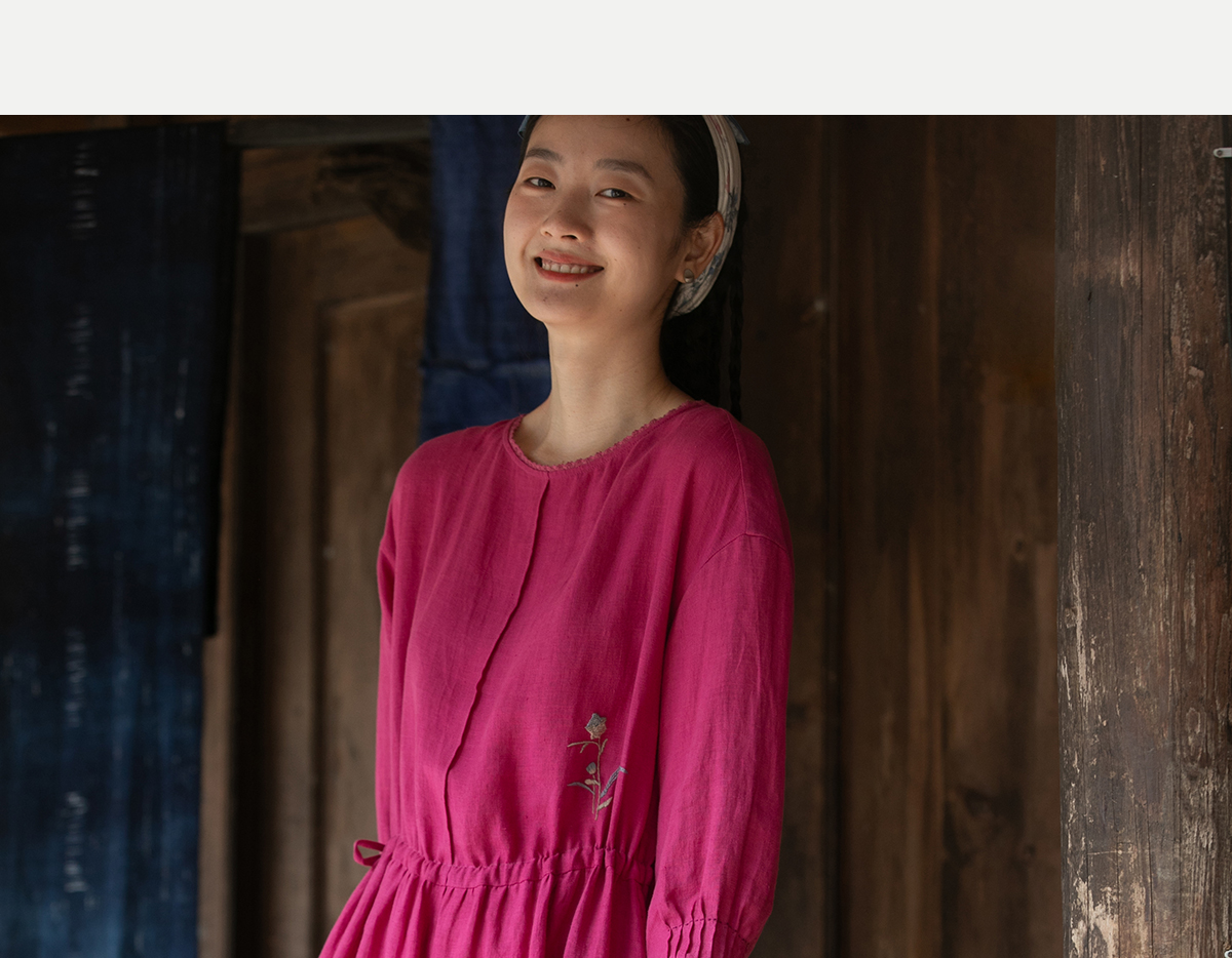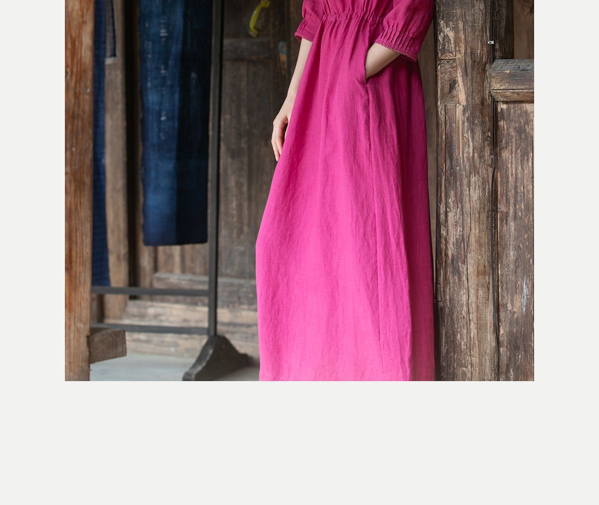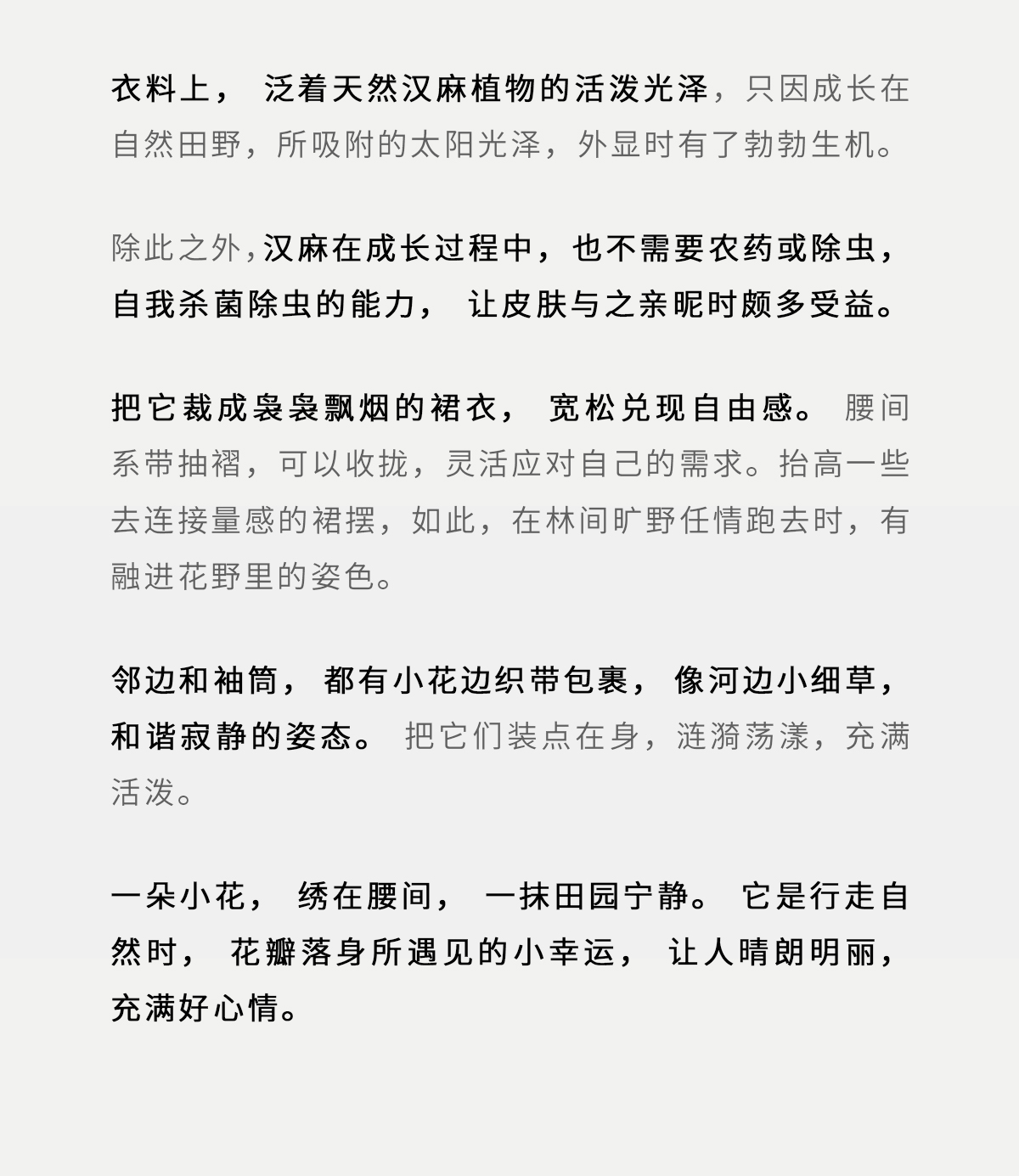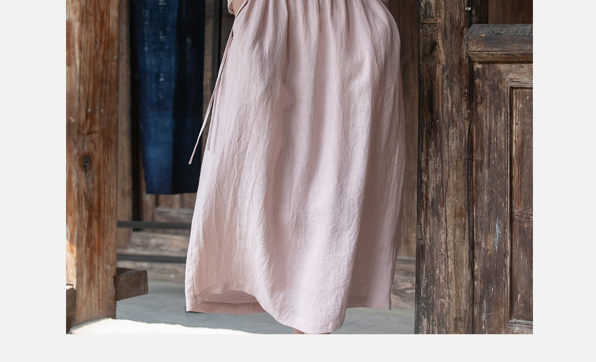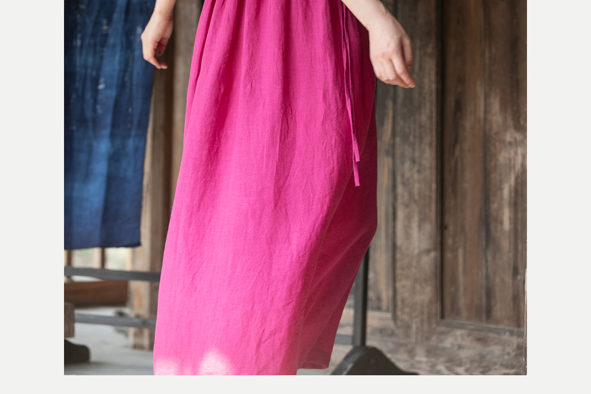牧衣游原创 汉麻手工刺绣连衣裙宽松轻薄柔软抽绳圆领长裙 无极