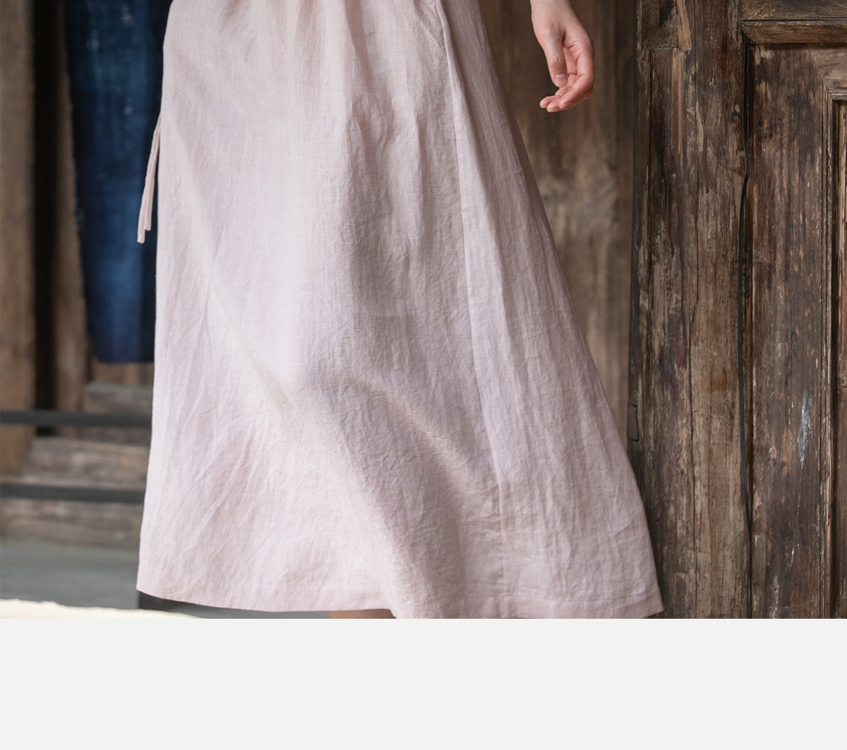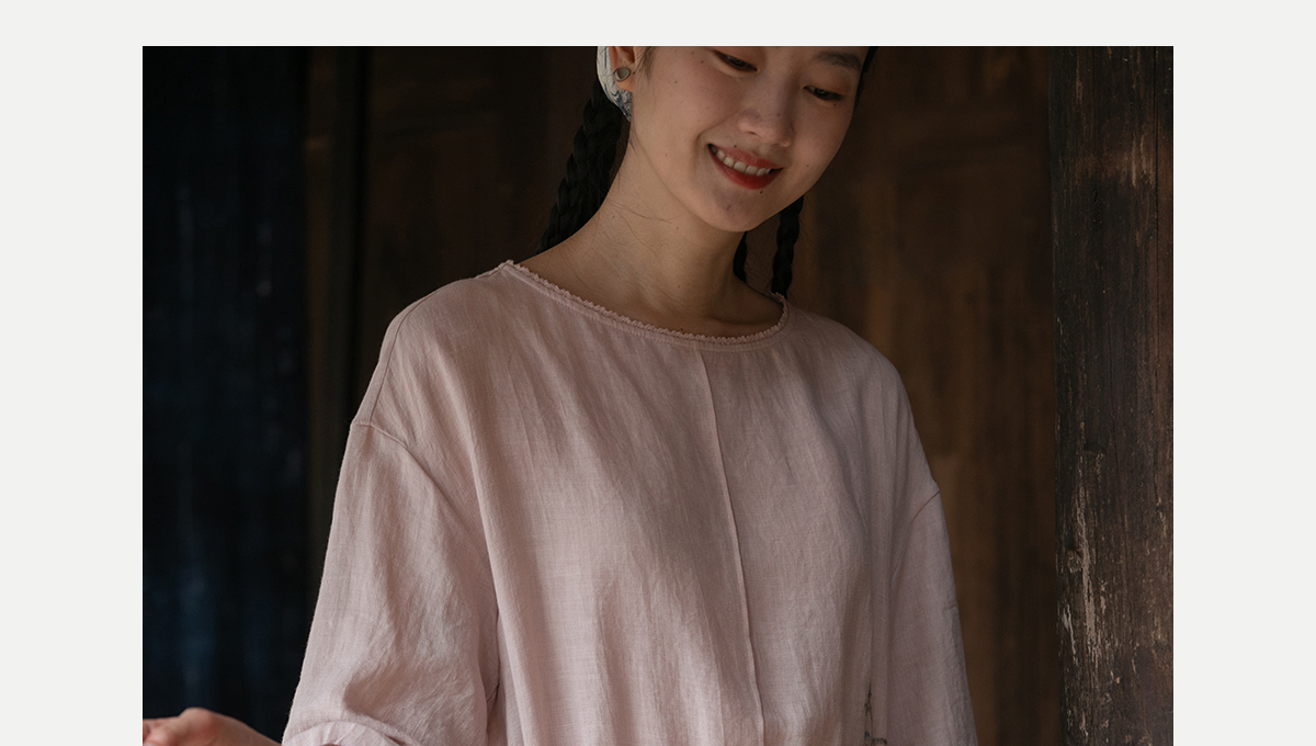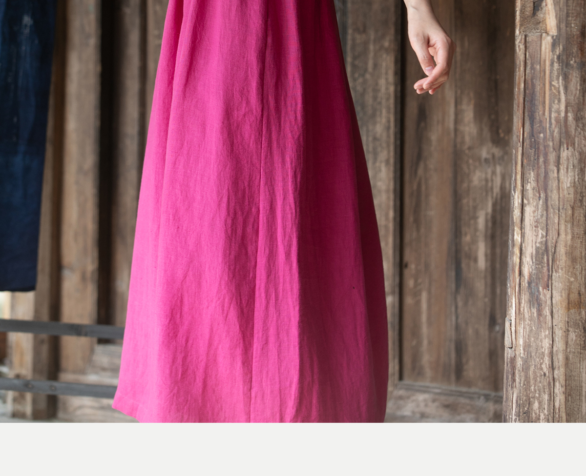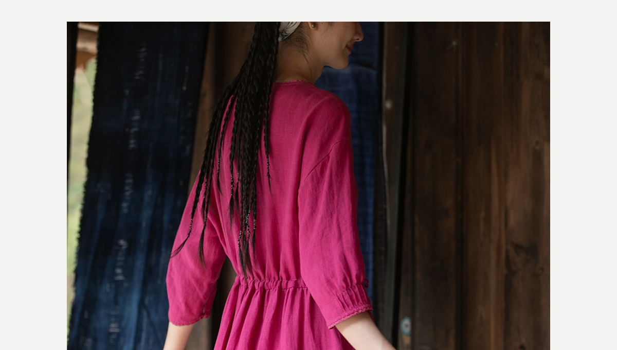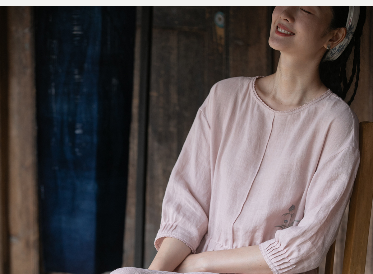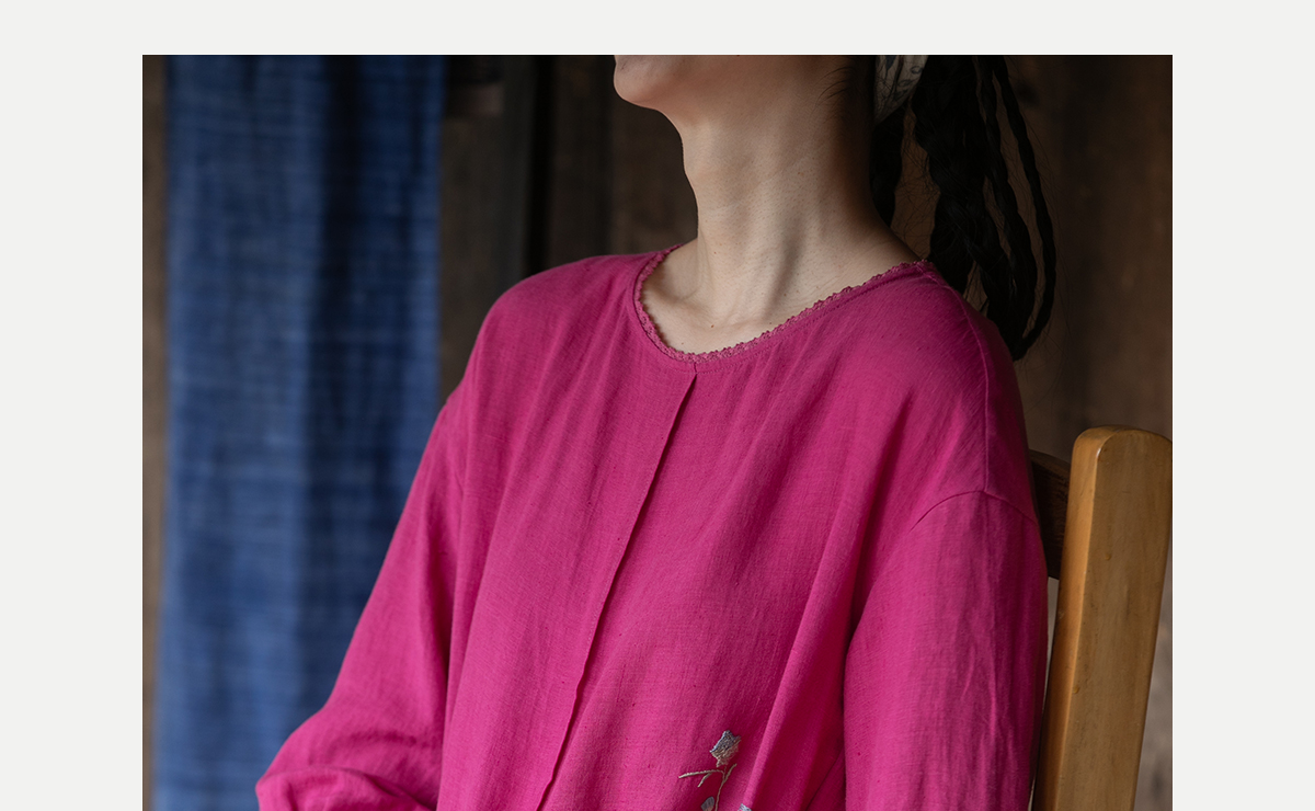 牧衣游原创 汉麻手工刺绣连衣裙宽松轻薄柔软抽绳圆领长裙 无极