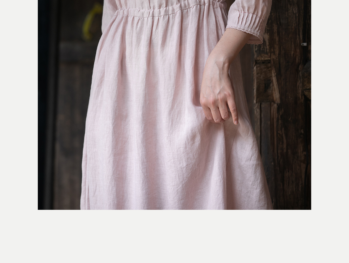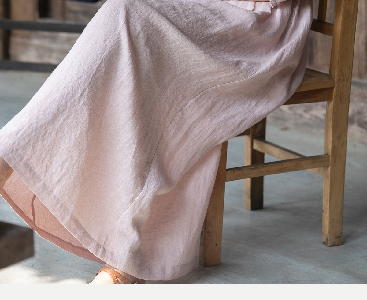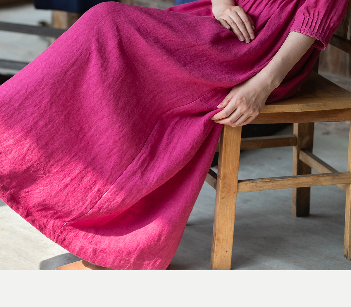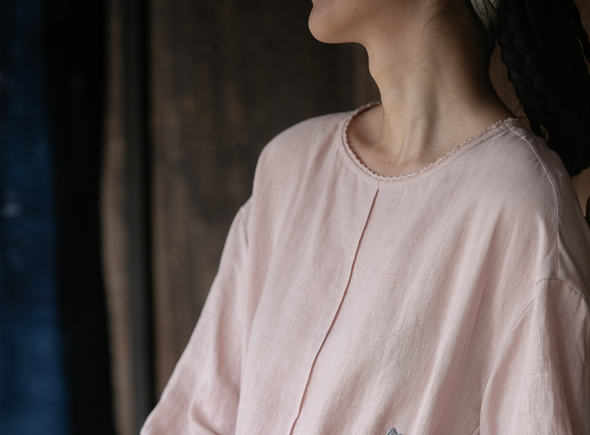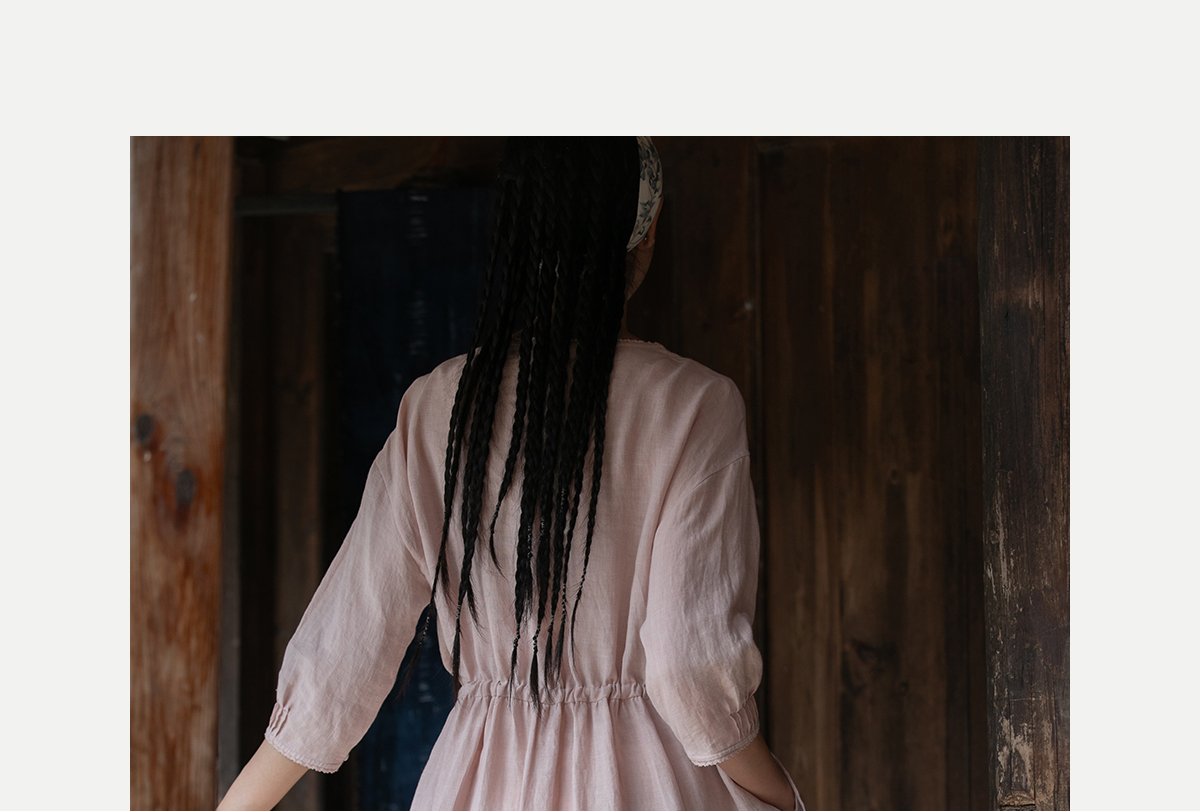 牧衣游原创 汉麻手工刺绣连衣裙宽松轻薄柔软抽绳圆领长裙 无极