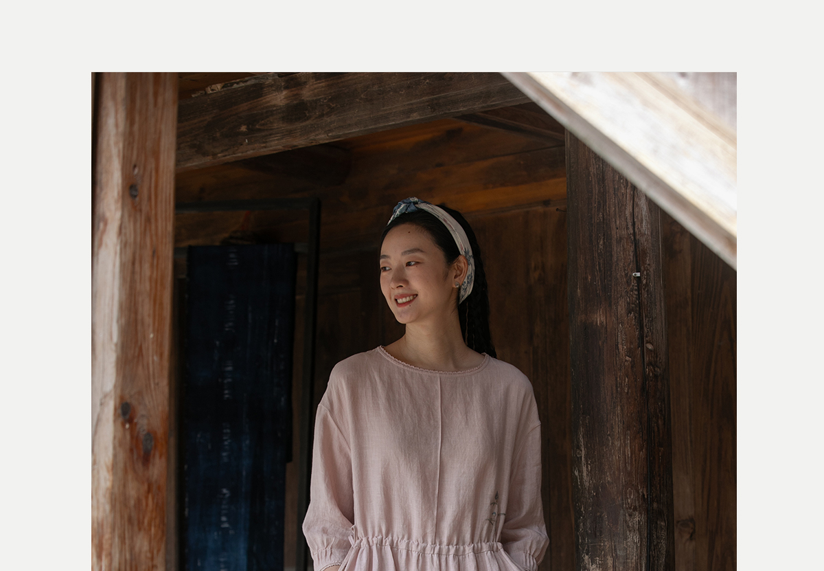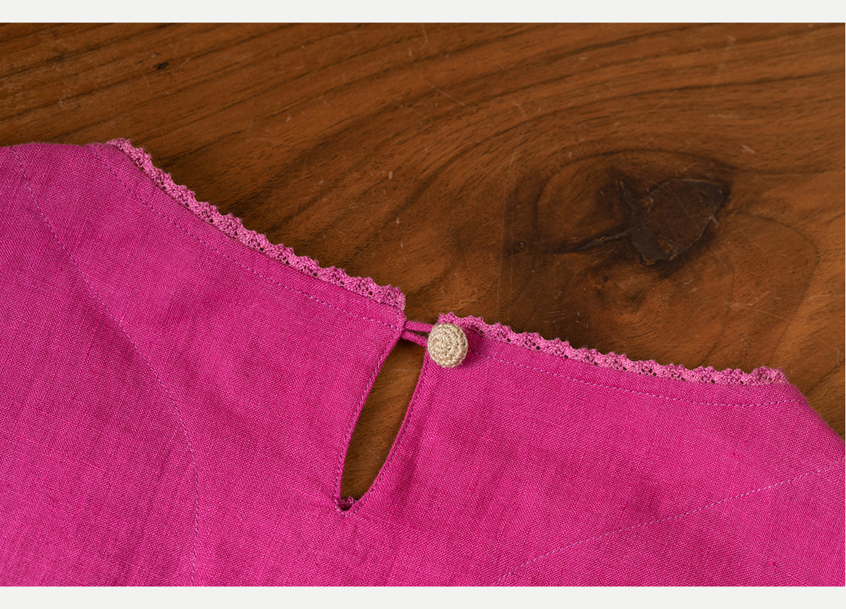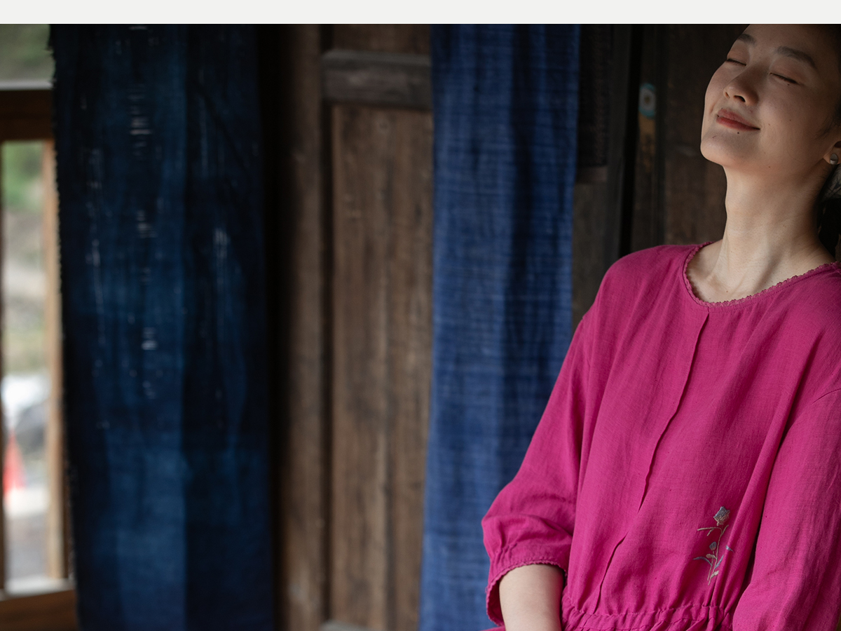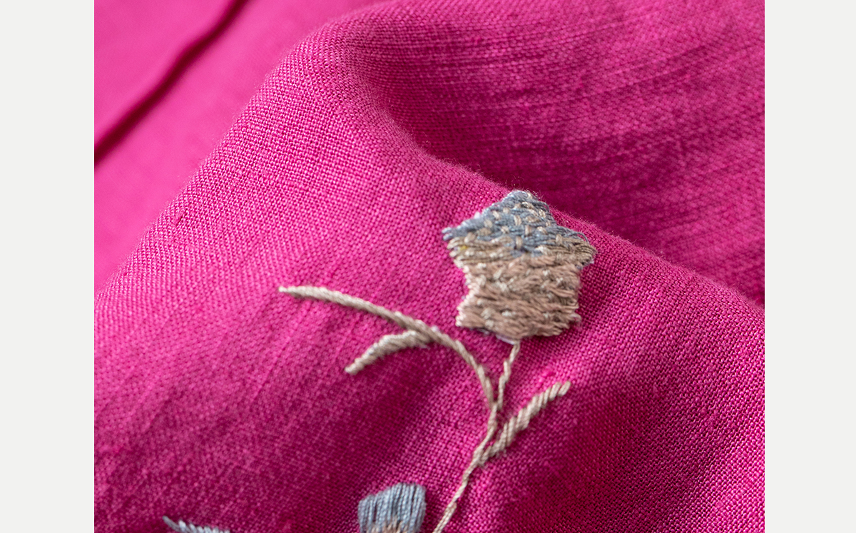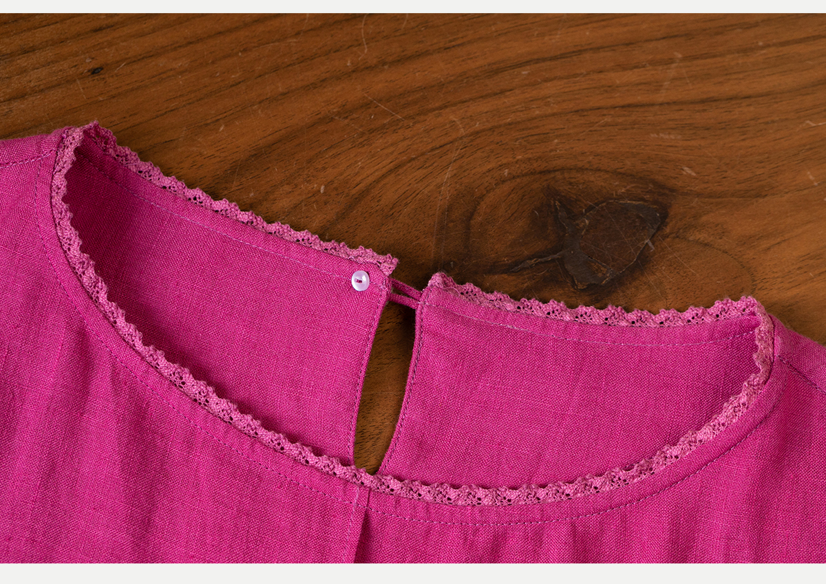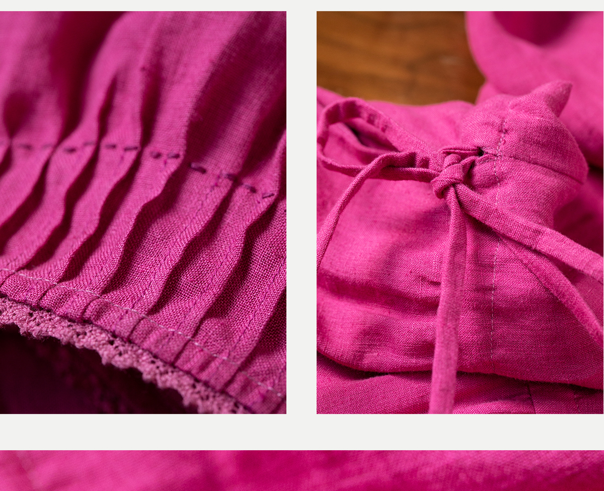 牧衣游原创 汉麻手工刺绣连衣裙宽松轻薄柔软抽绳圆领长裙 无极
