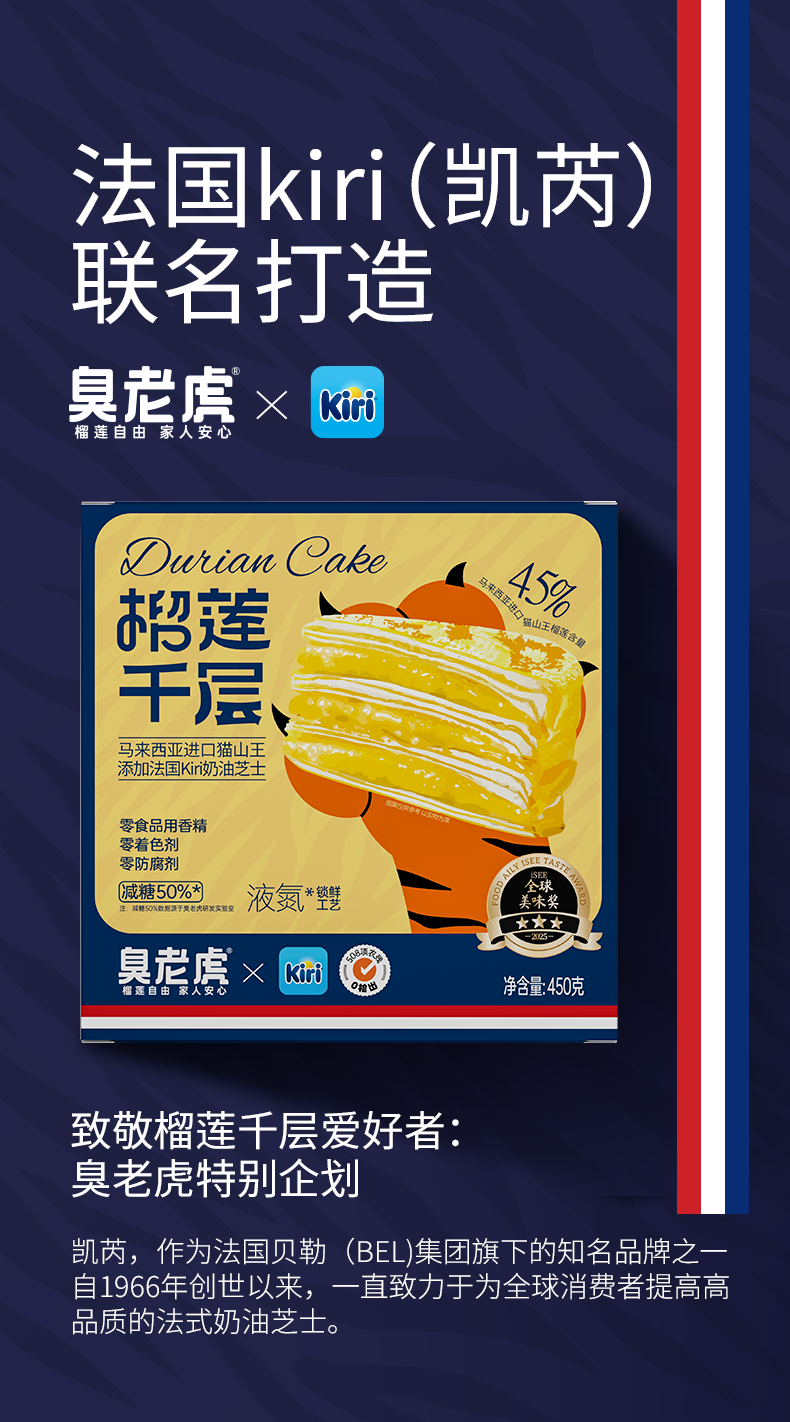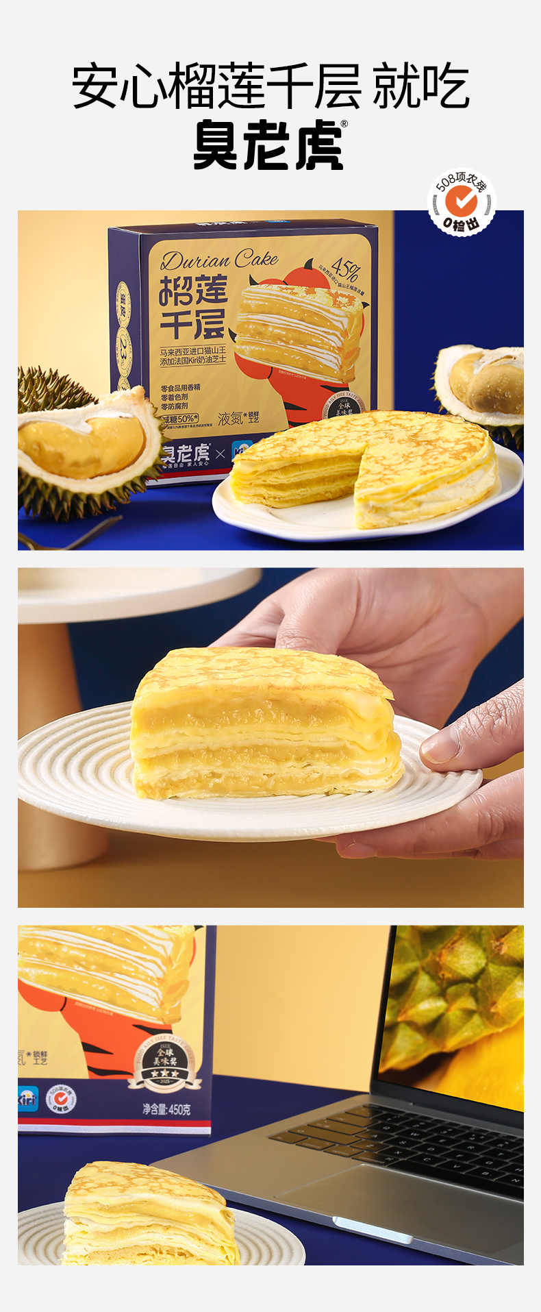 【美味蛋糕丨猫山王榴莲千层蛋糕】精选优质食材,搭配法国传统虎纹烙皮工艺,全程不加一滴水,只用纯牛奶加新鲜鸡蛋做成饼皮,口感层次丰富,细腻绵密,入口即化,当下午茶很不错呦~