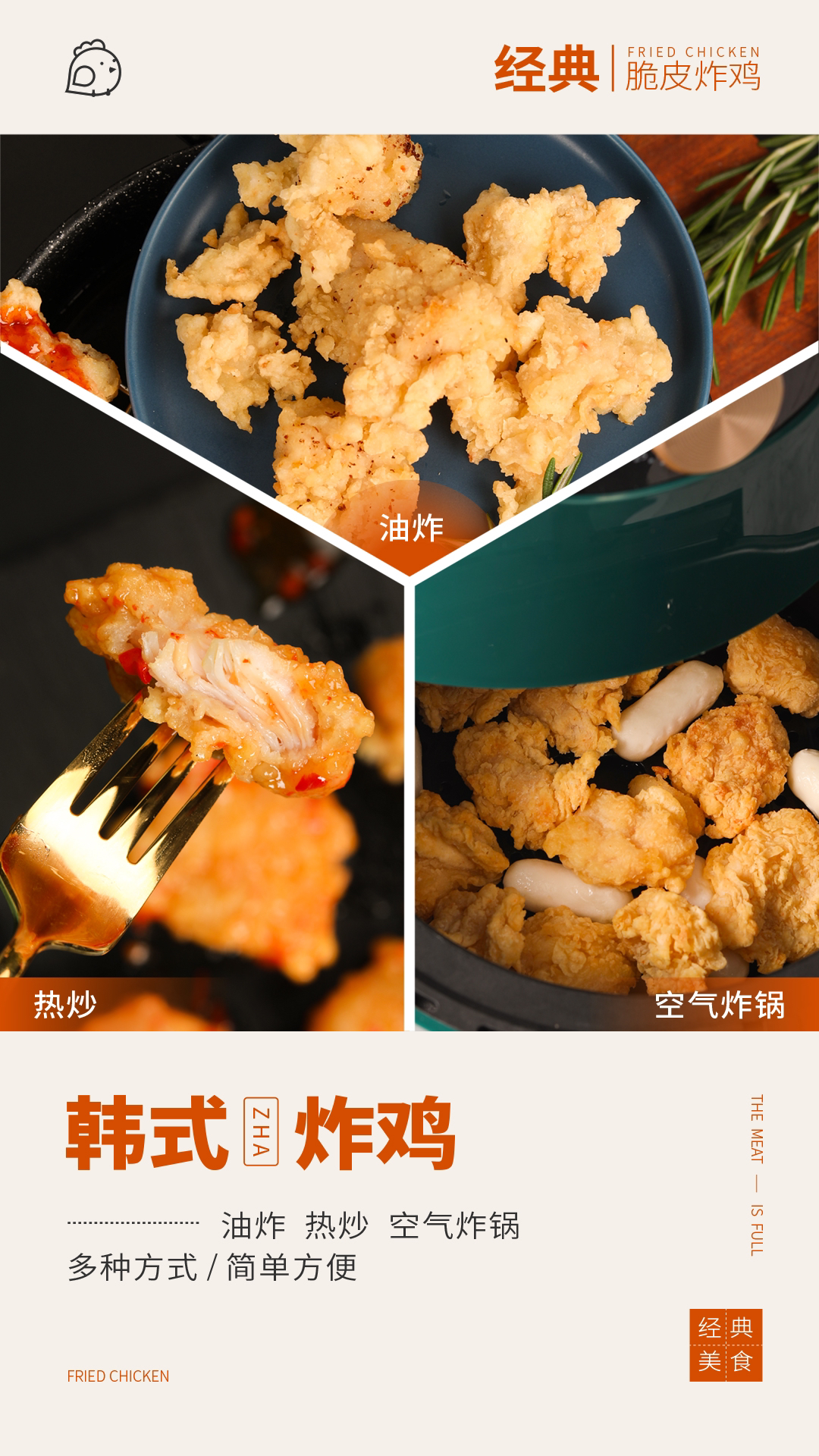 外卖店的炸鸡,总是担心油不干净,自己动手diy,简单方便卫生,不用跑炸鸡店也能吃到超正宗的美味,在家也能轻松做出正宗那个韩国炸鸡店同款味道,甜辣香脆,鲜嫩多汁,制作简单便捷,在家轻松享受韩式炸鸡的美食快乐!再也不用点外卖了~