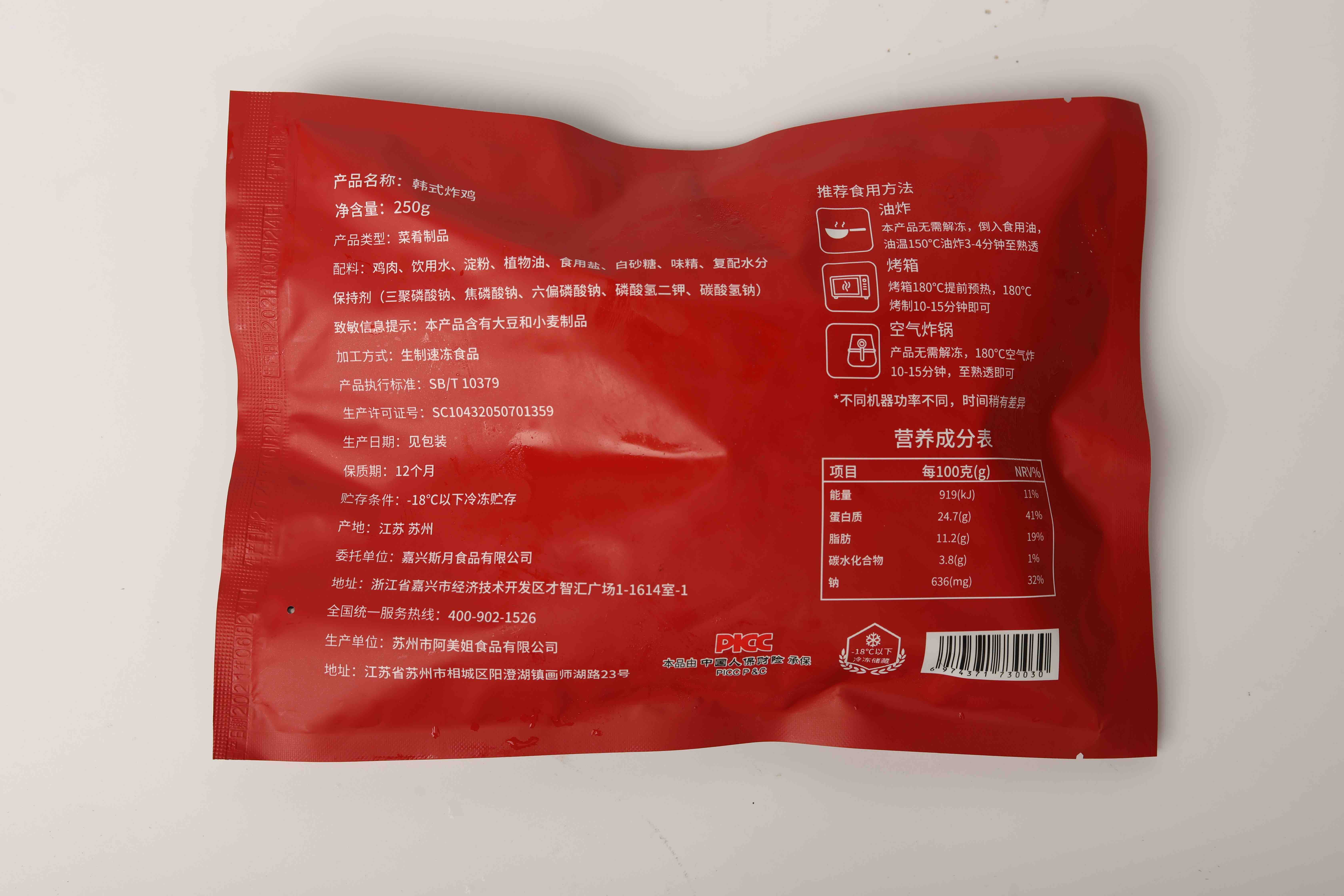 【配料】鸡肉、饮用水、淀粉、植物油、食用盐、白砂糖、味精、复配水分保持剂