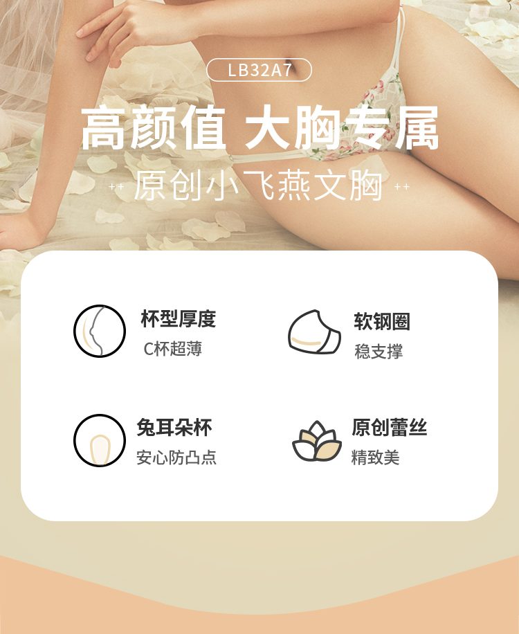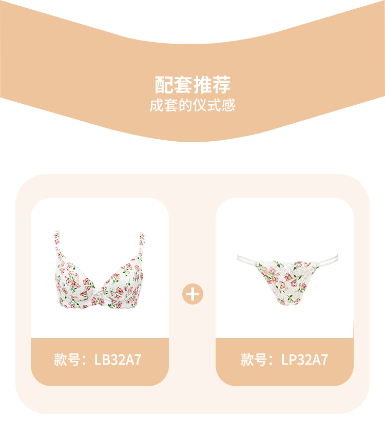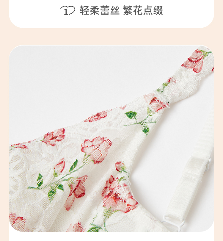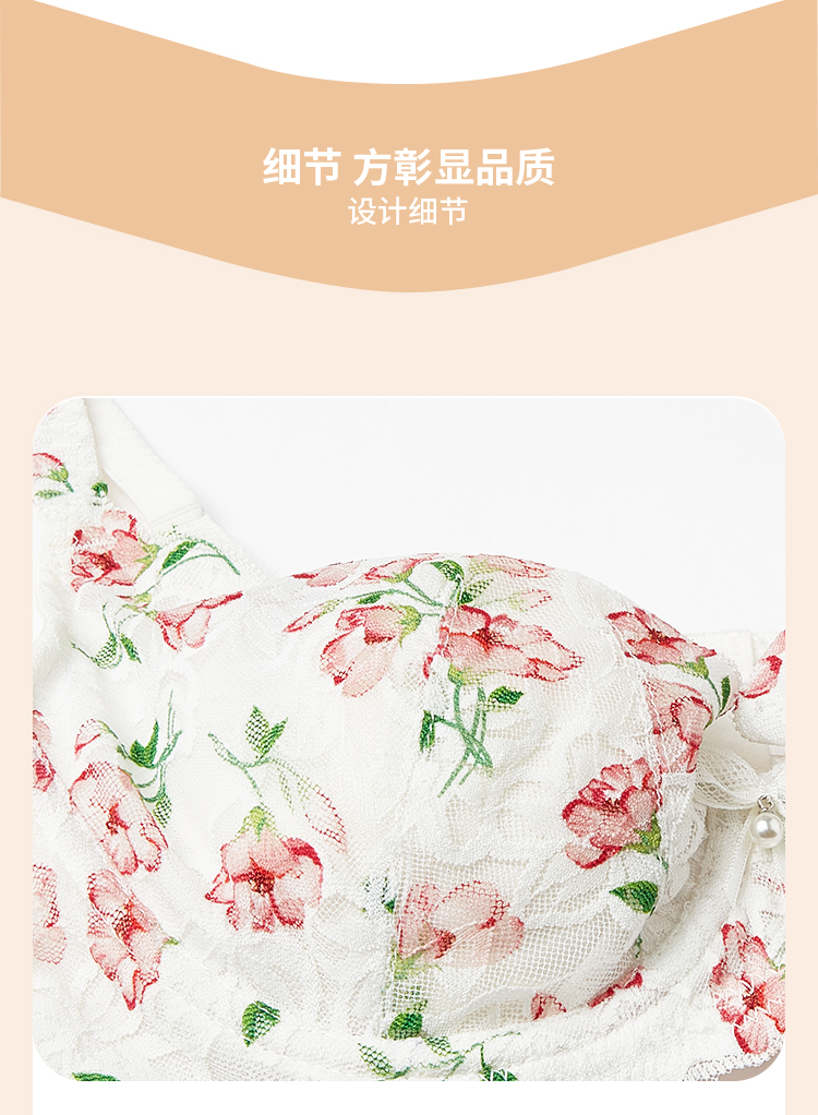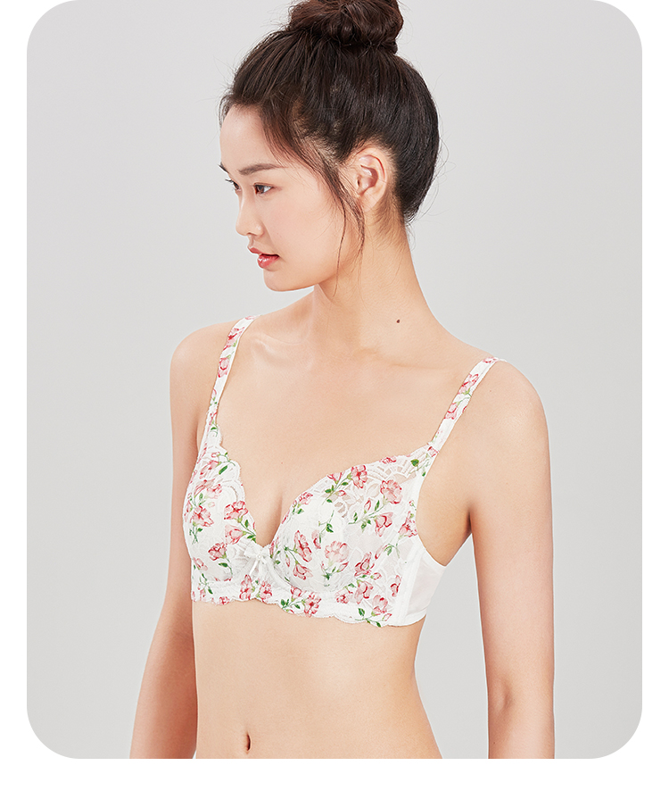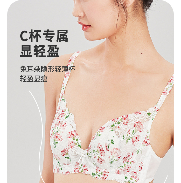都市丽人自然舒适常规内衣C杯超薄3/4杯印花蕾丝文胸三排软钢圈LB32A7
