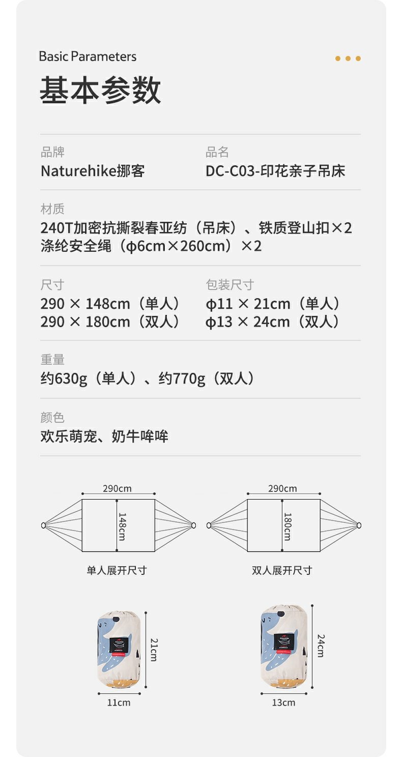 【已下架】预售 | Naturehike挪客 LEAF-HAMMOCKS亲子印花吊床[福利品]