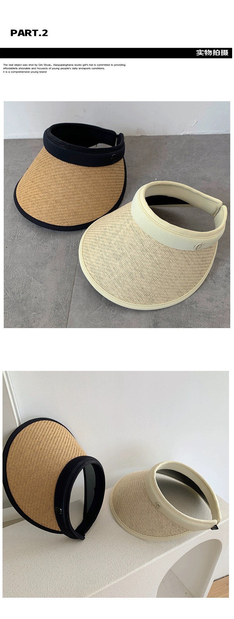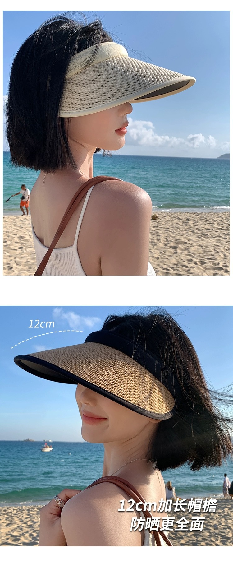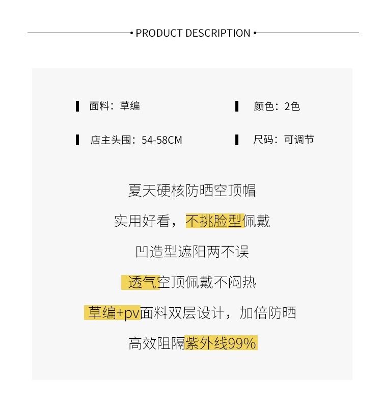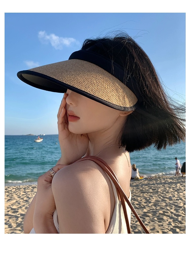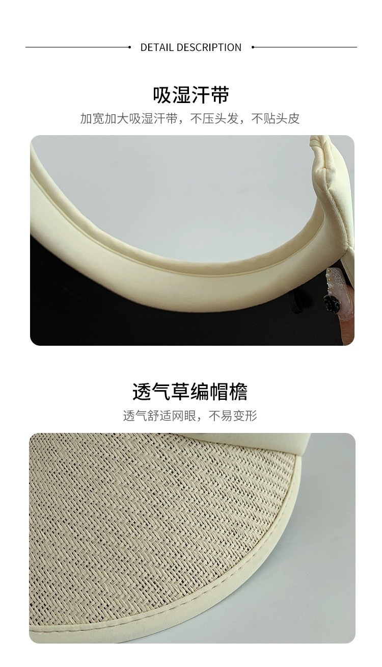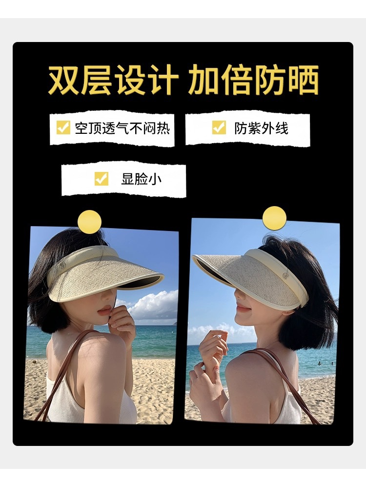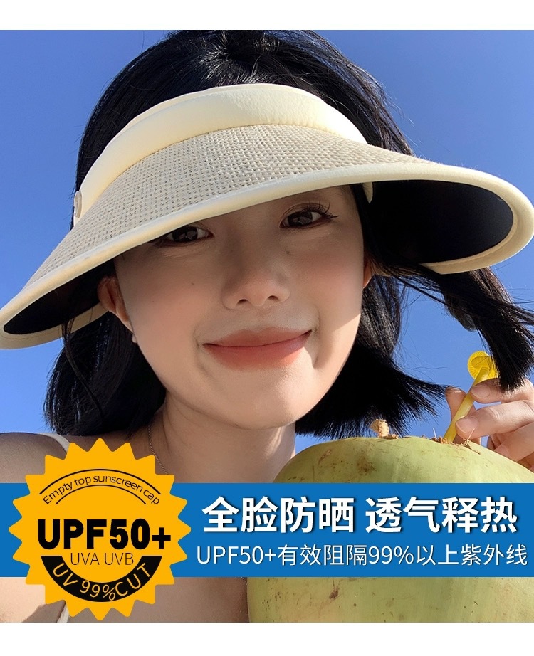 新款发卡大檐防晒草帽夏骑车防紫外线空顶帽太阳帽防晒遮阳帽