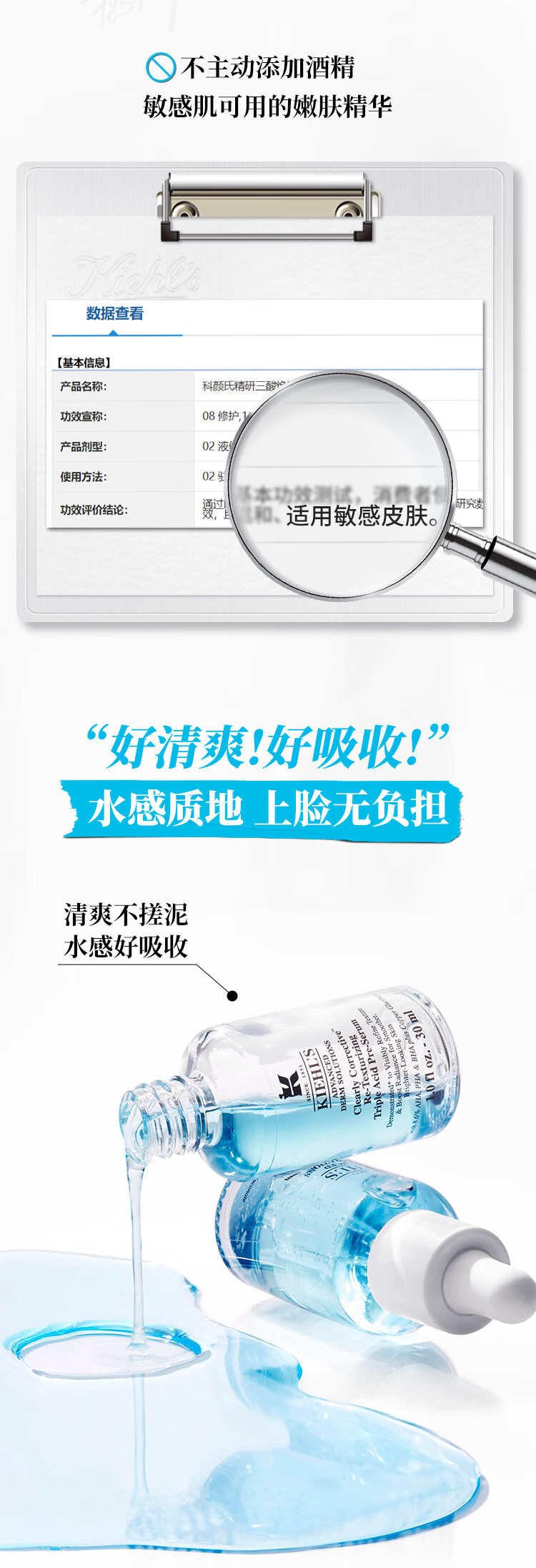 科颜氏 溜溜瓶三酸精华 焕肤细嫩透亮收缩毛孔淡细纹