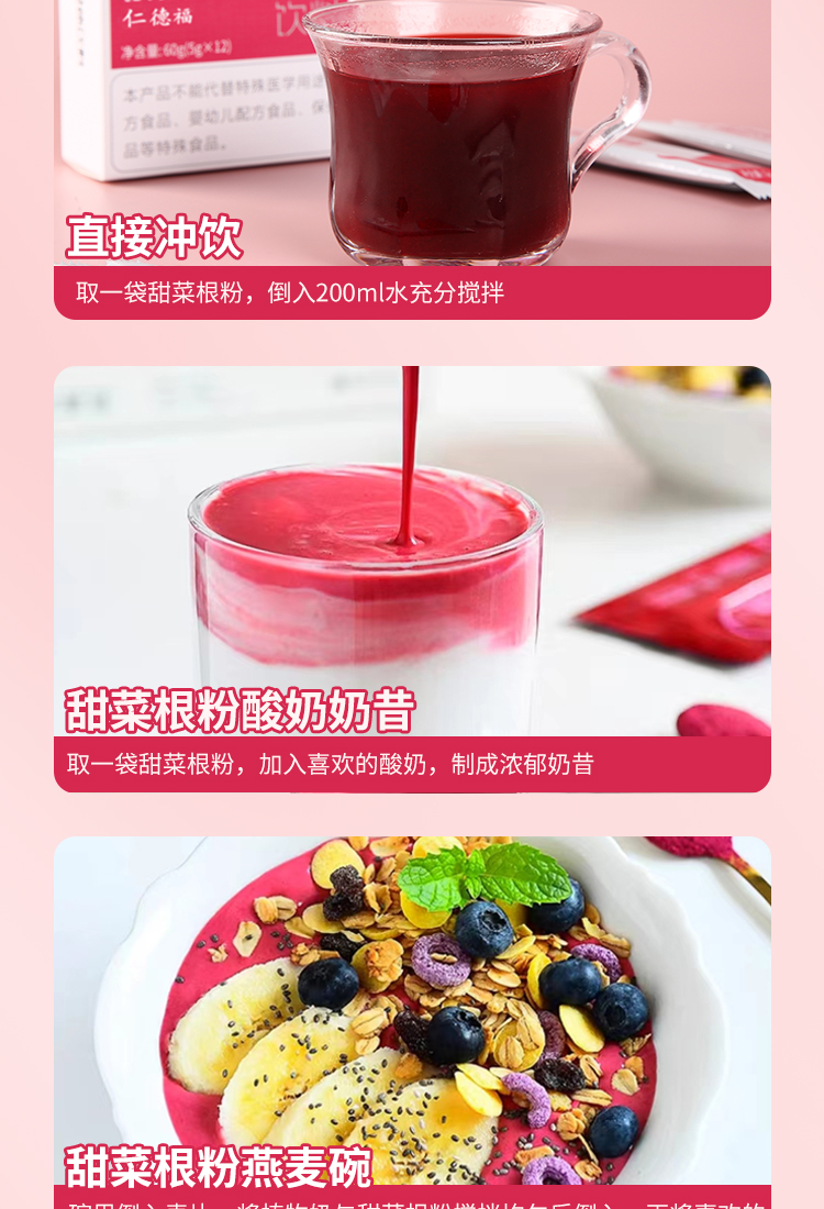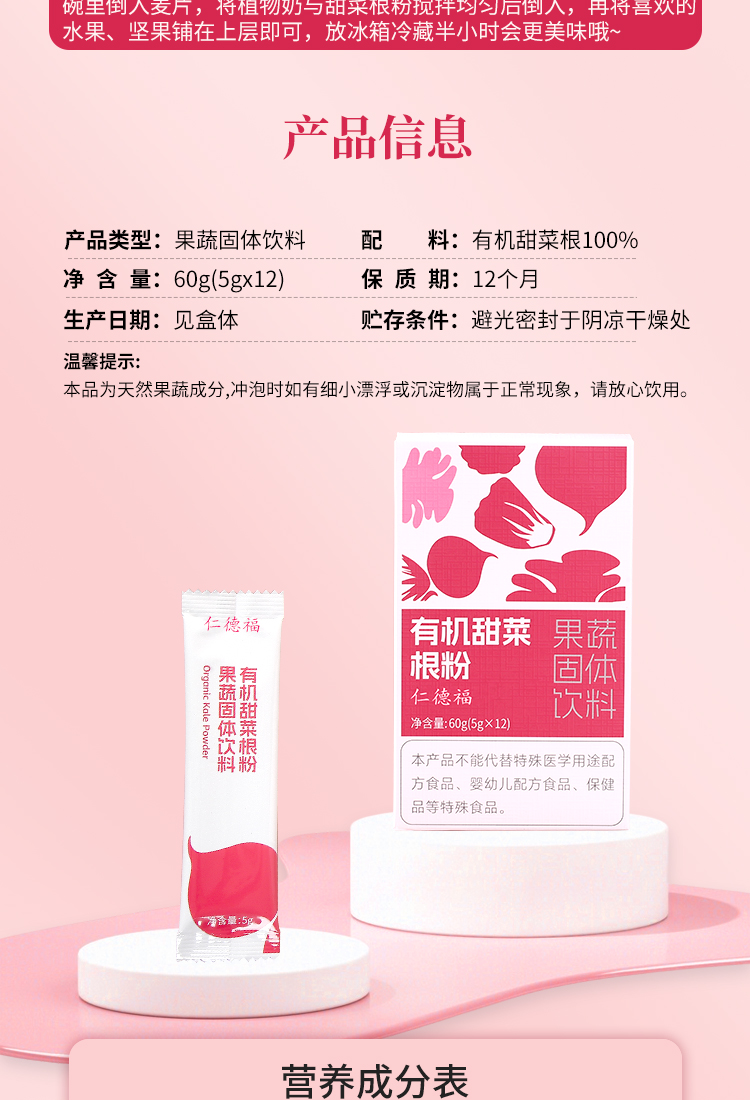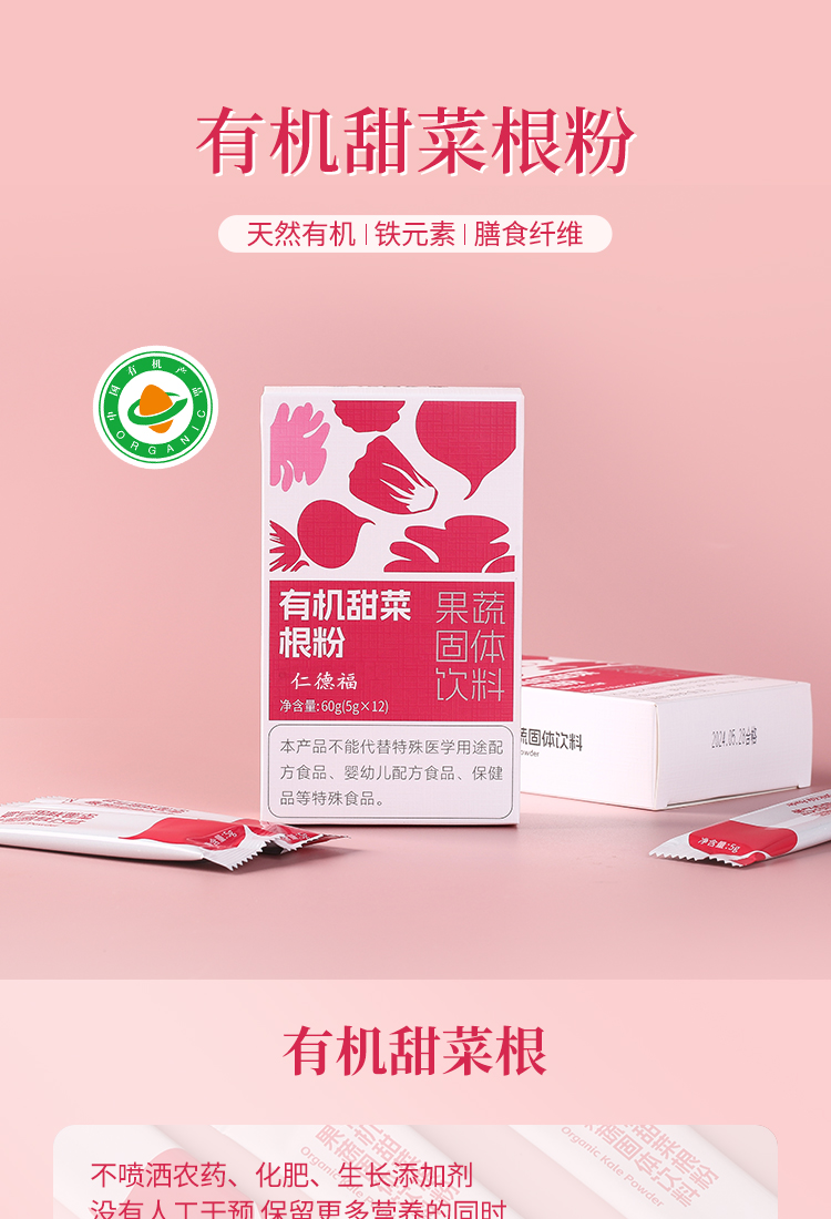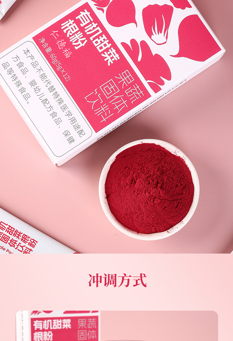 有机甜菜根粉 冲泡即食蔬果粉 60g/盒(5g*12条)【京东快递送货上门】
