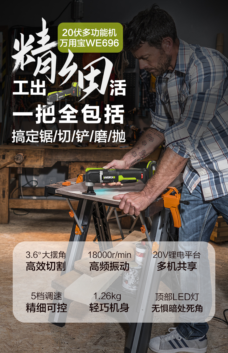 威克士万用宝多功能机WE696 开槽修边切割神器木工工具大全