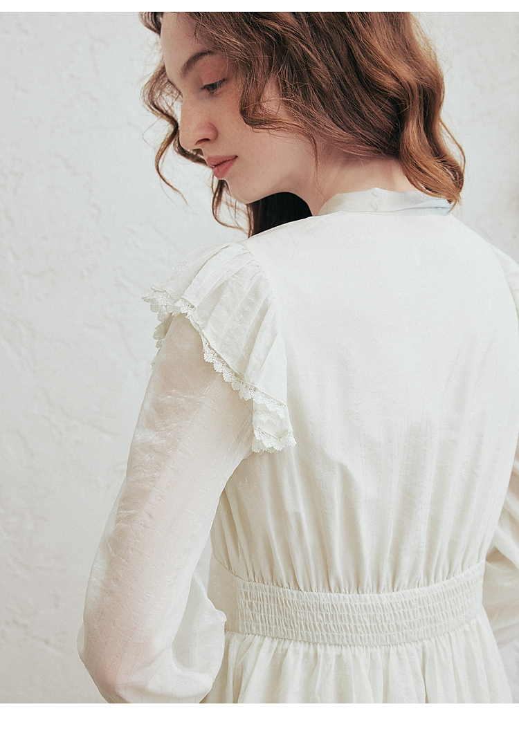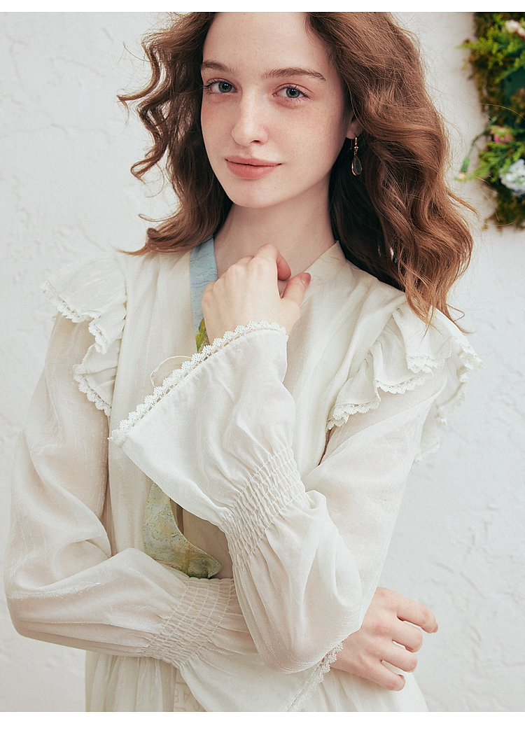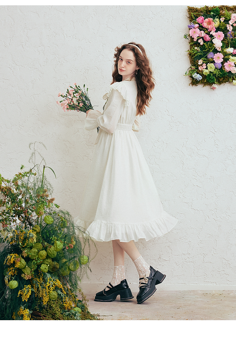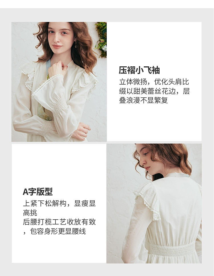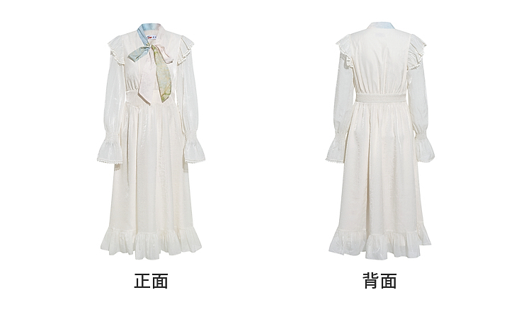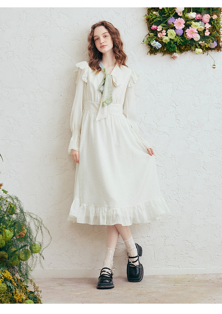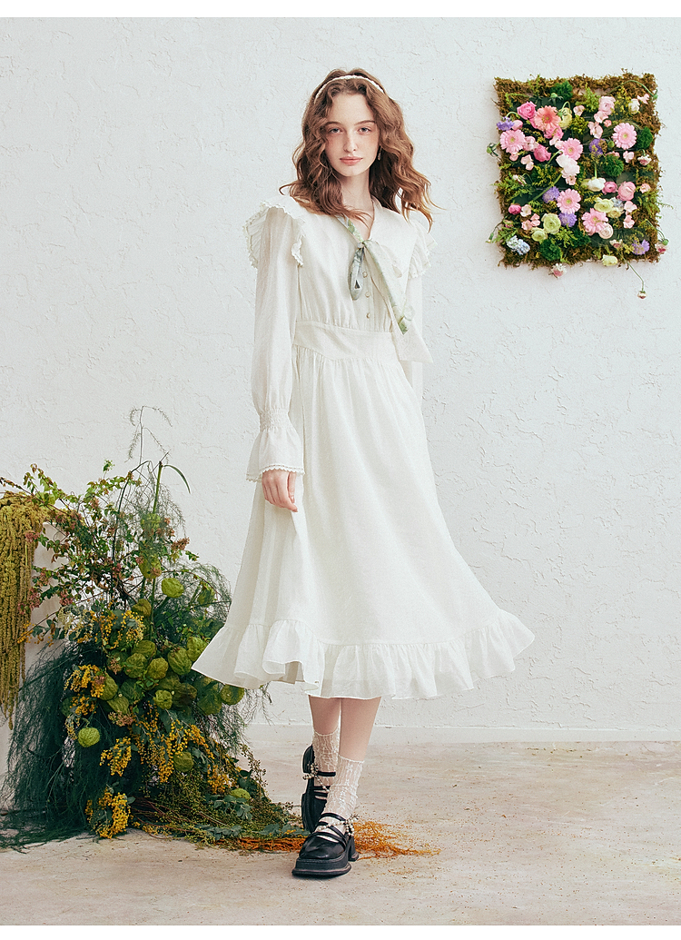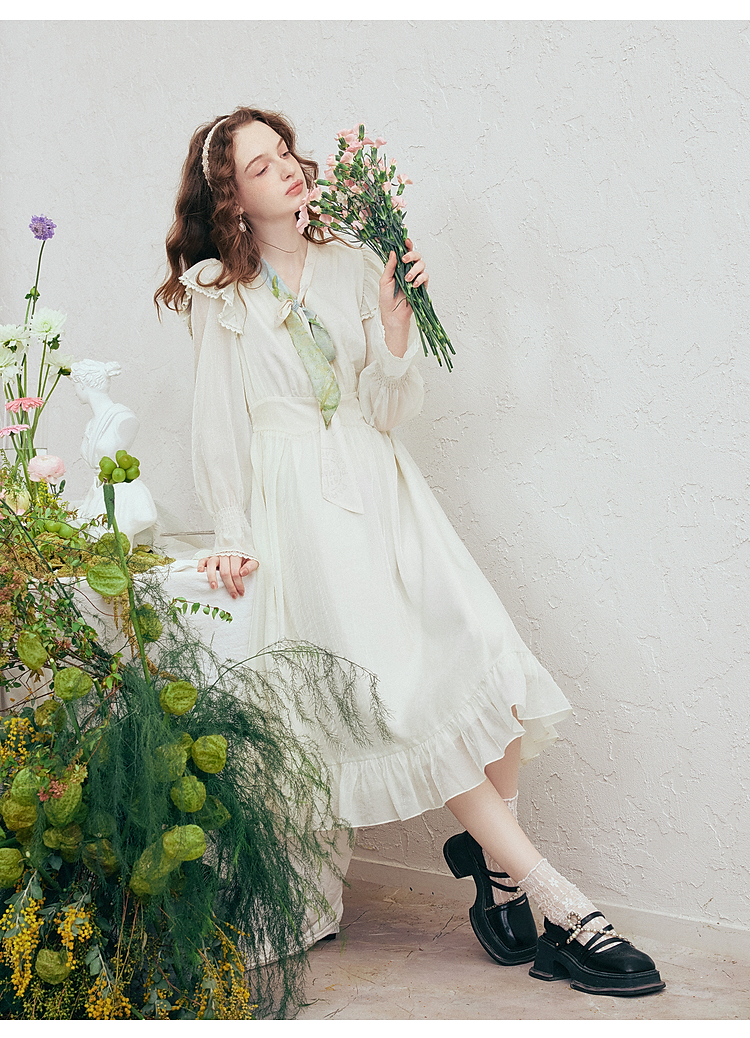 两三事梵高文艺情书未眠2026春新款甜美荷叶边拼接印花领带连衣裙