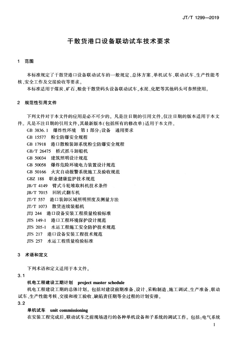 | 干散货港口设备联动试车技术要求(JT/T 1299—2019) | ||