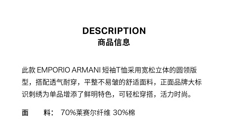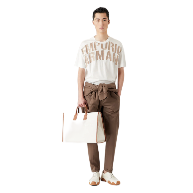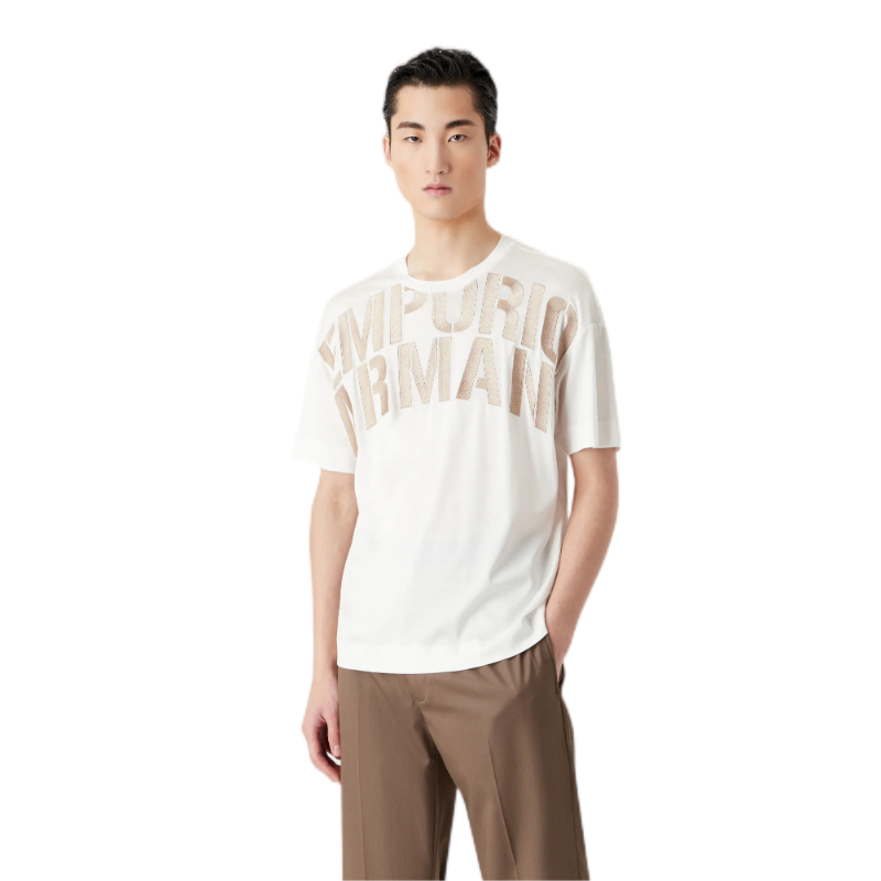 E ARMANI T恤衫男 3R1TZ21JUVZ-01G1 BIANCO SCRITTA.70%LYOCELL 30%COTTON
