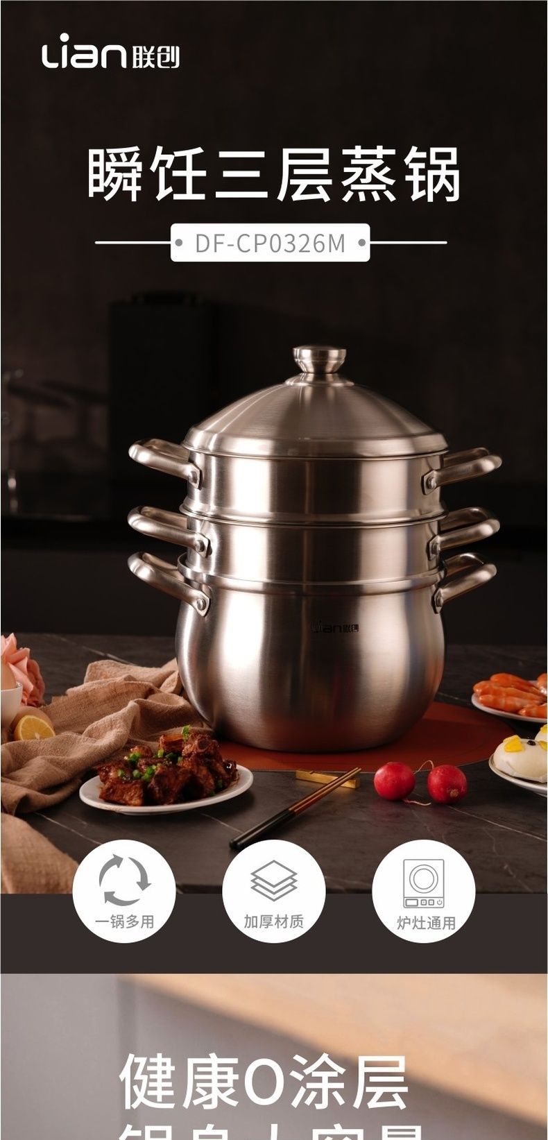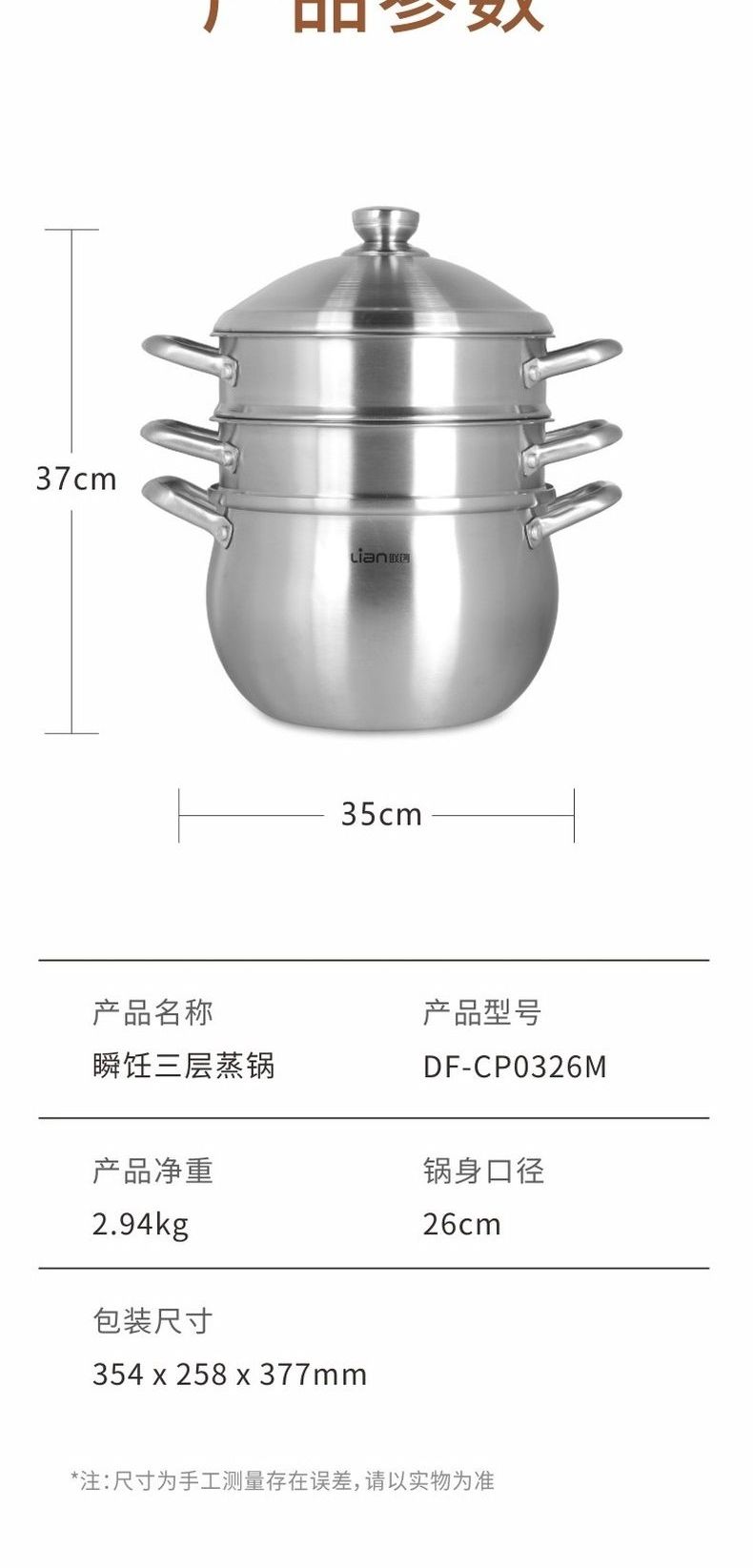 联创 瞬饪三层蒸锅 DF-CP0326M 大号蒸锅家用馒头包子锅