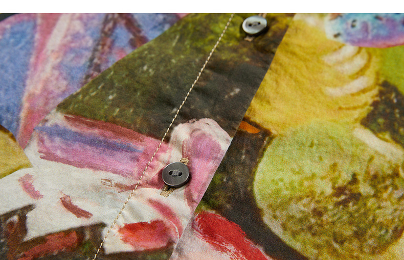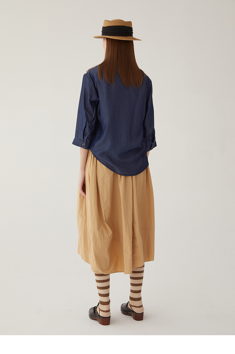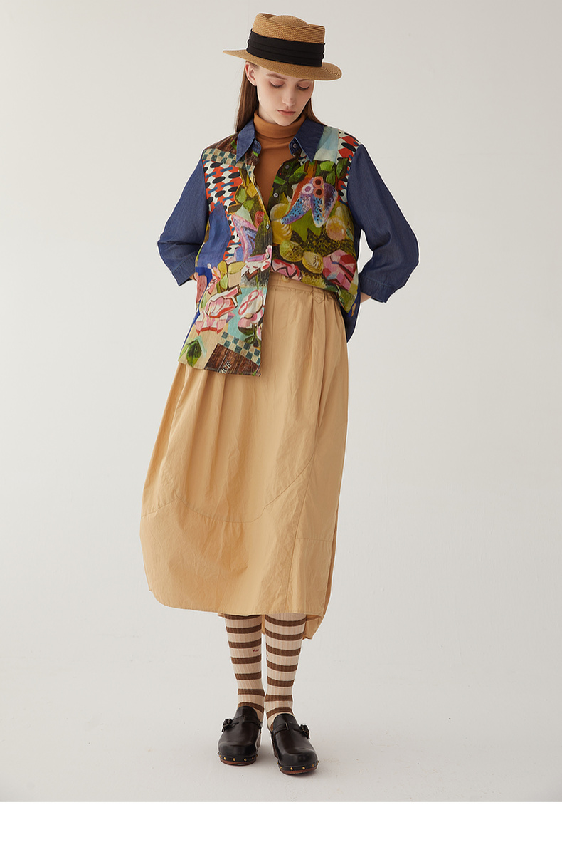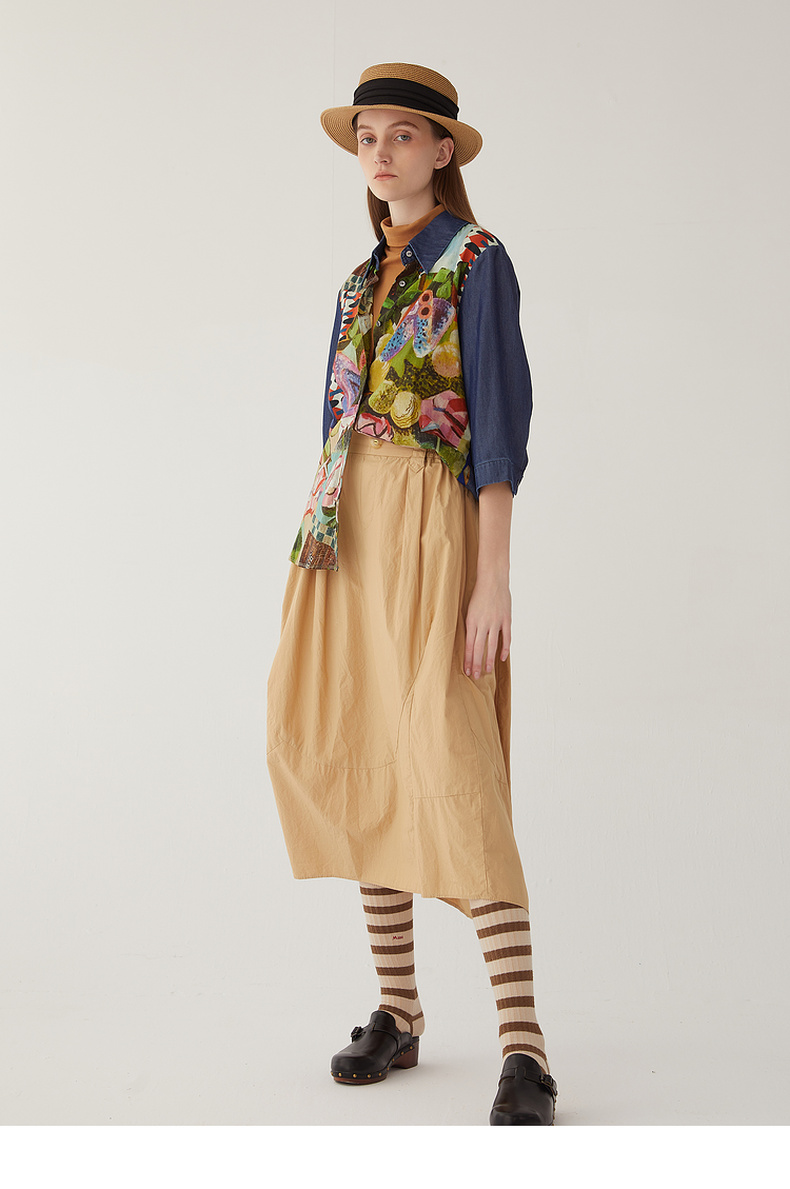 谜底牛仔拼接衬衫分袖女2024夏季新款复古印花亲肤衬衣246MC7071