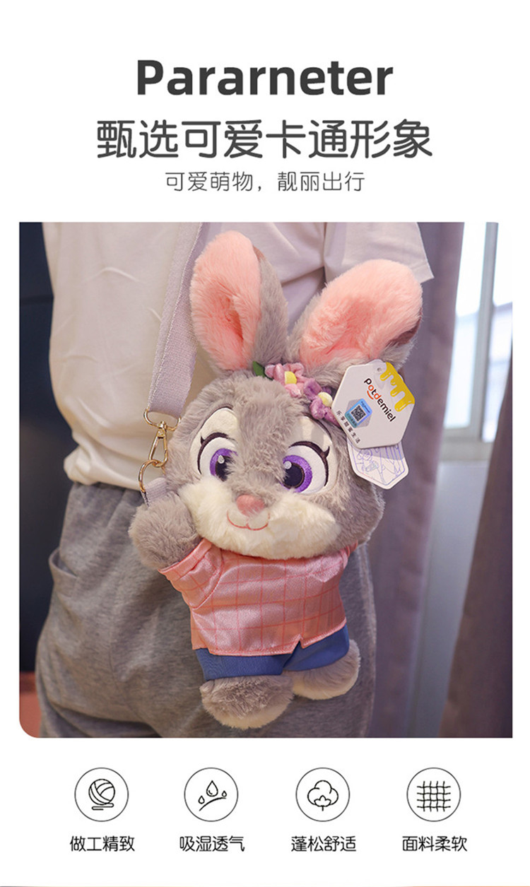 迪士尼疯狂动物城 朱迪爱抱抱玩偶包包 毛绒玩具 斜挎包女 可爱娃娃 毛绒玩偶