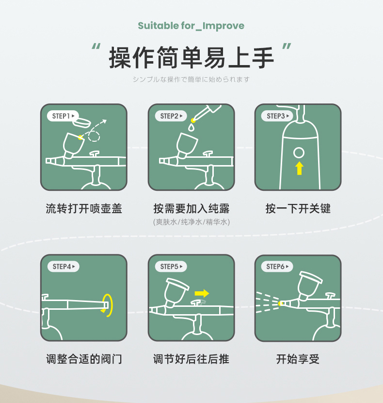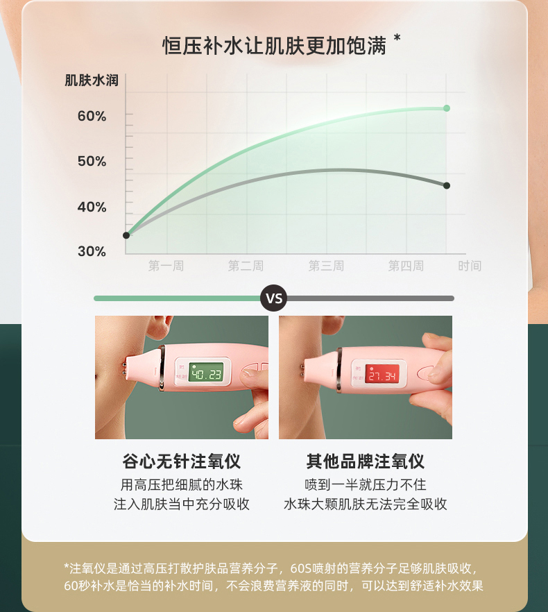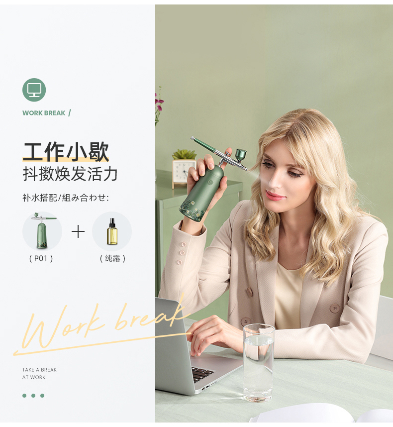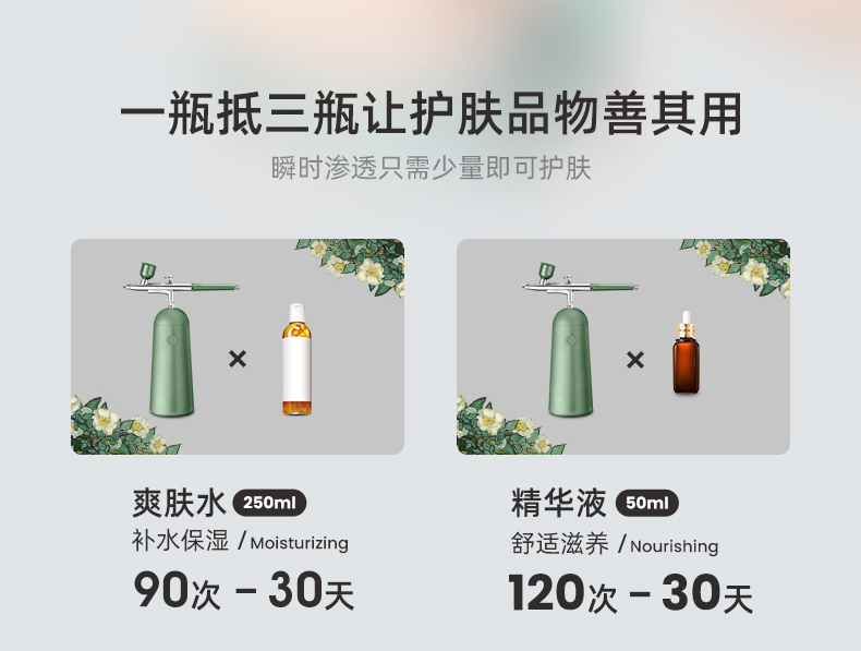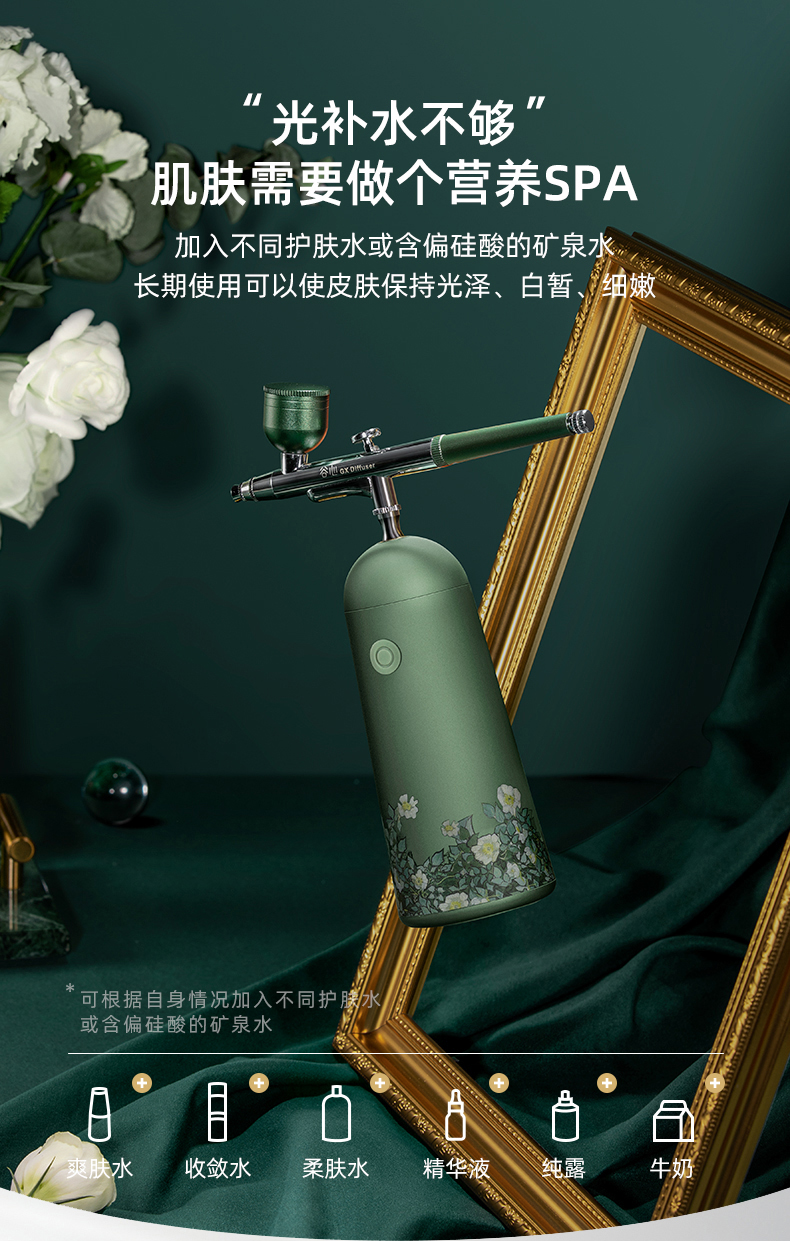 2.注氧仪用完后壶身中不要有残留化妆液,再次装点温水喷出,防止喷头堵塞;