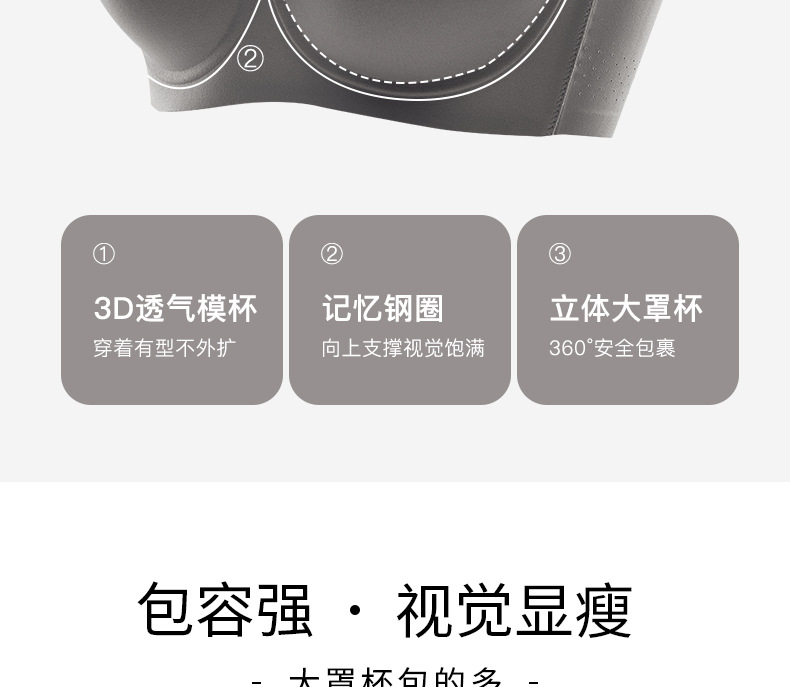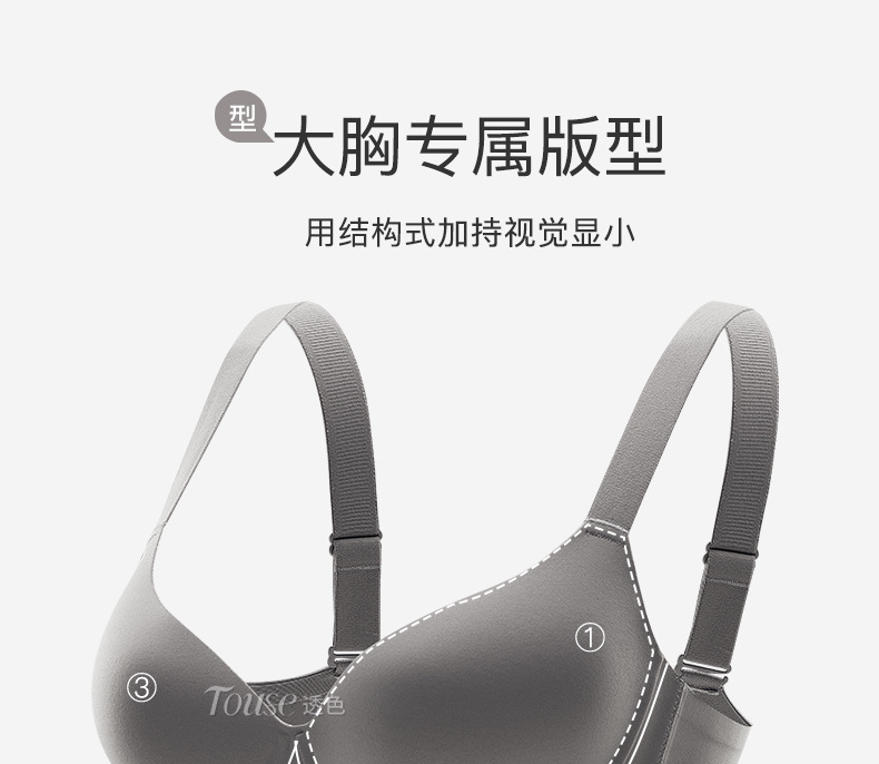 大胸显小内衣全罩杯薄款缩胸聚拢收副乳防下垂调整型无痕文胸大码