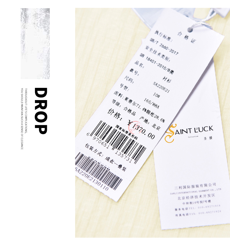 SAINT L’UCK/圣媛女装新春夏季轻薄简约款纯色衬衫SA220E21