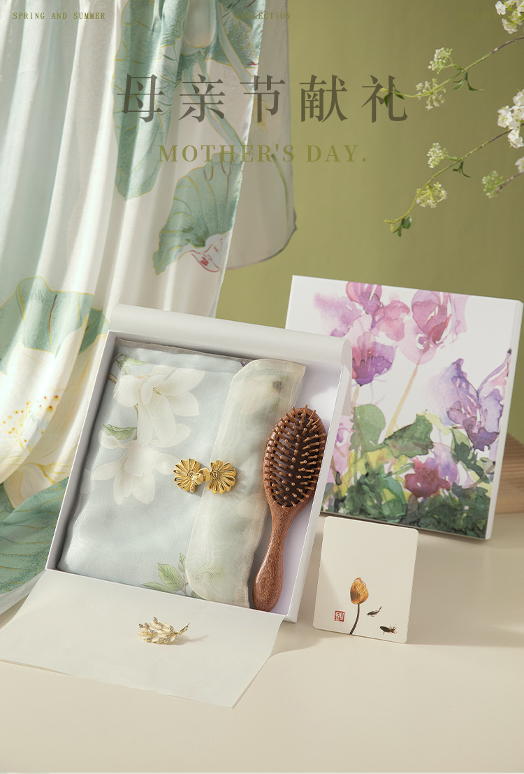 【🎁母亲节精选礼】✨披肩丝巾&檀木气垫梳&胸针&郁金香花束任选礼盒,高级感满分,送妈妈的温暖心意💝丝巾母亲节礼物 不选贵&只选合适!