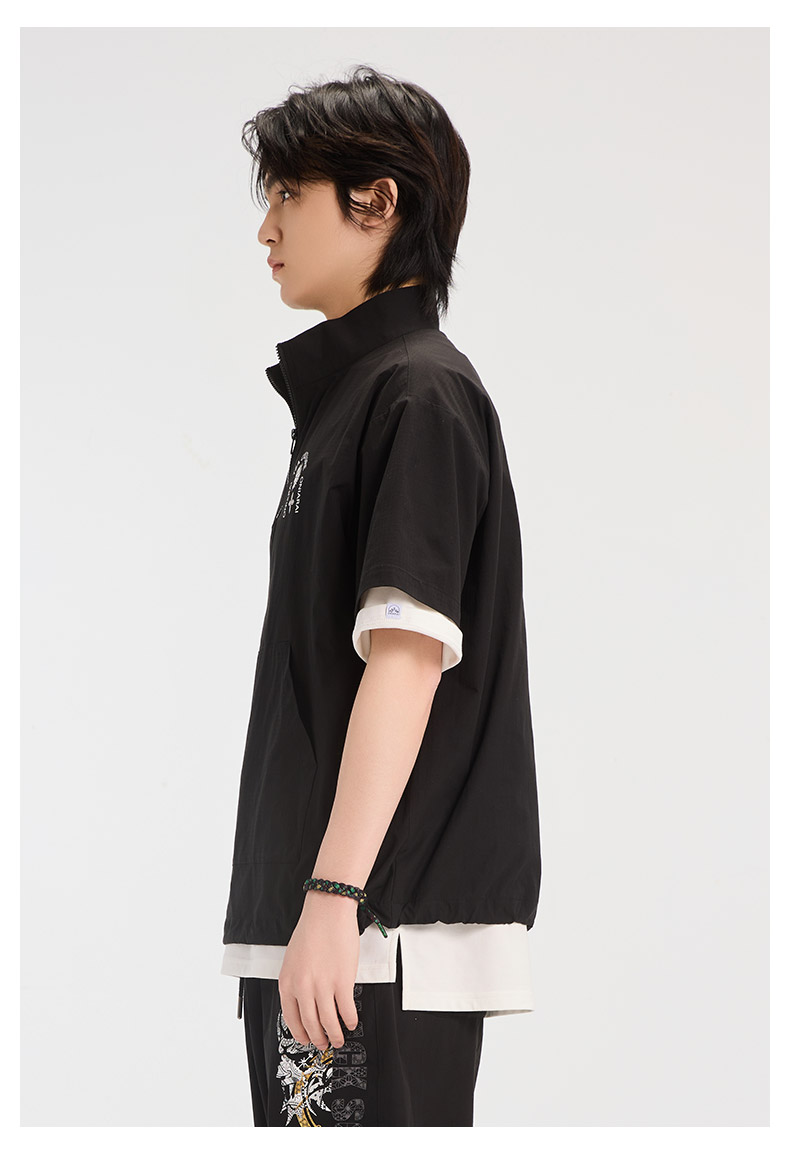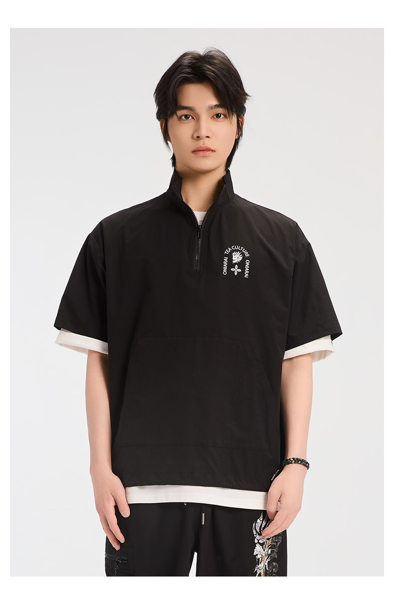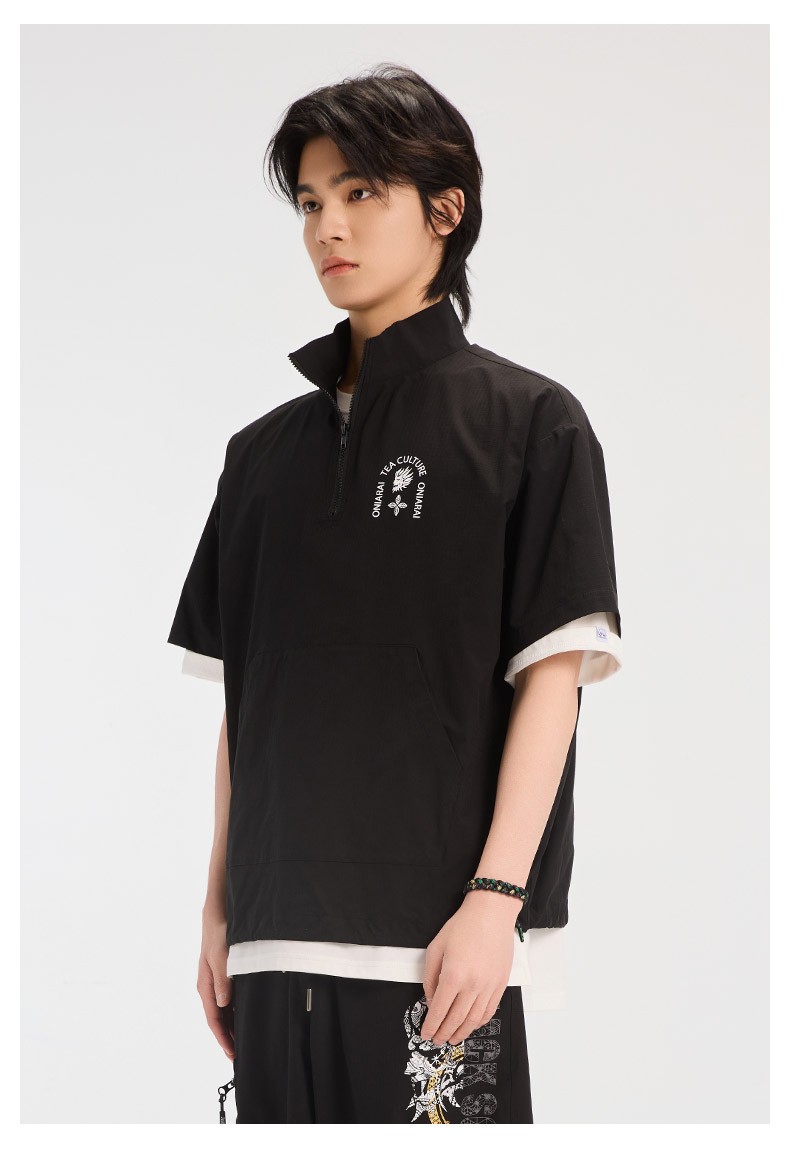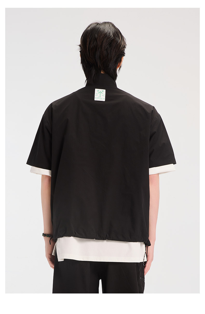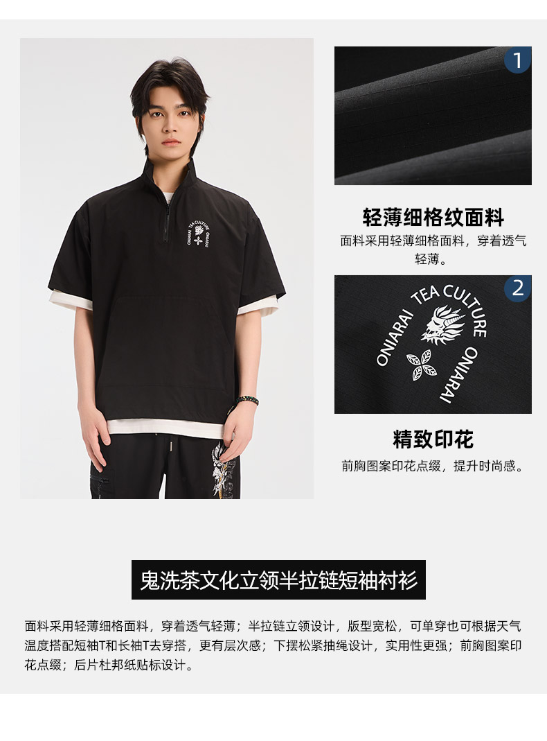 ONIARAI/鬼洗25春夏新品茶文化立领半拉链短袖衬衫男式 B740026