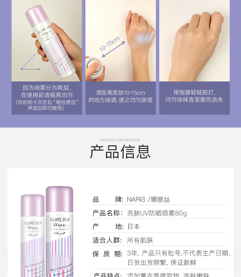 NARIS娜丽丝 紫色防晒喷雾 80g 日本
