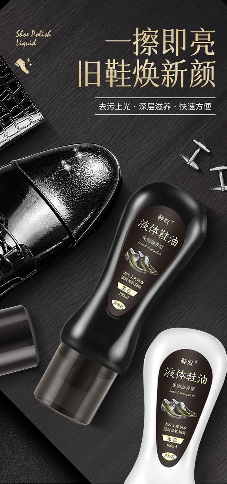 【皮鞋护理神器!买一送一!✨】液体鞋油 黑色无色皮鞋皮质保养油高级清洁剂 ,通用鞋刷护理擦鞋神器,一擦即亮!中性配方温和养护,让您的鞋子天天如新
