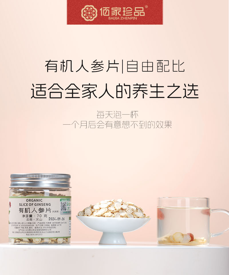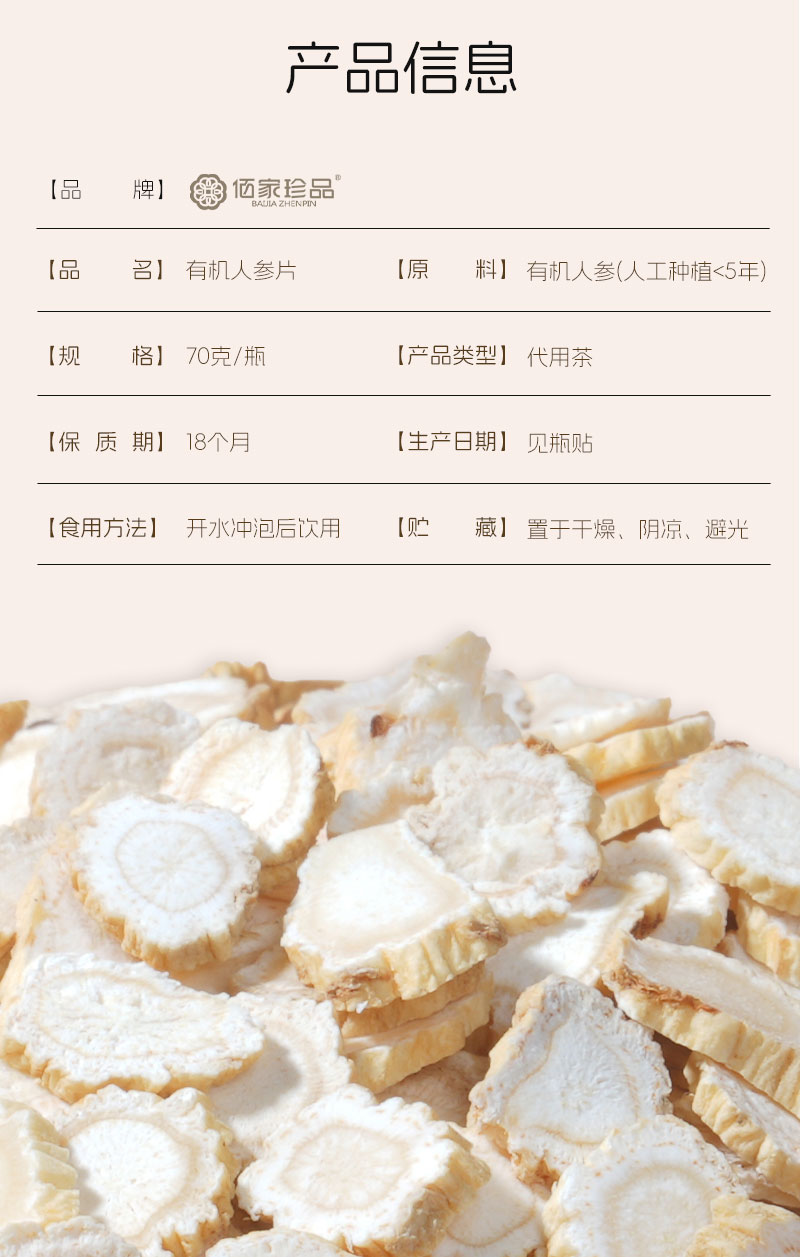 有机人参片 精选长白山人参制作人参片泡水炖煮茶养生【中原仓京东快递发货】