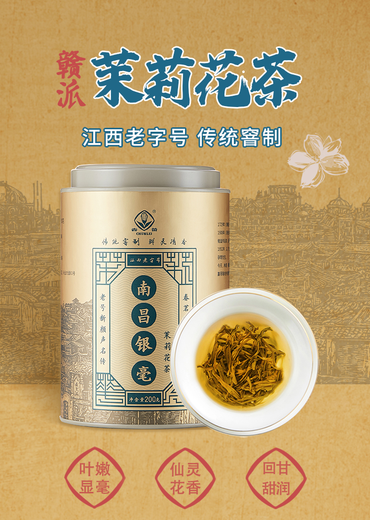 【源自国营南昌茶厂】林恩春蕾 南昌银毫 特种烘青茉莉花茶 200g罐(天猫同款)