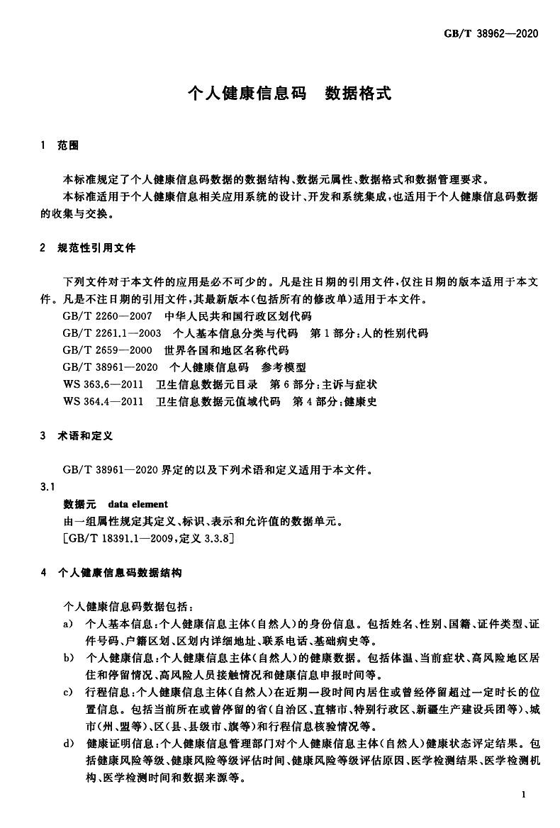 书名:GB/T 38962-2020个人健康信息码 数据格式