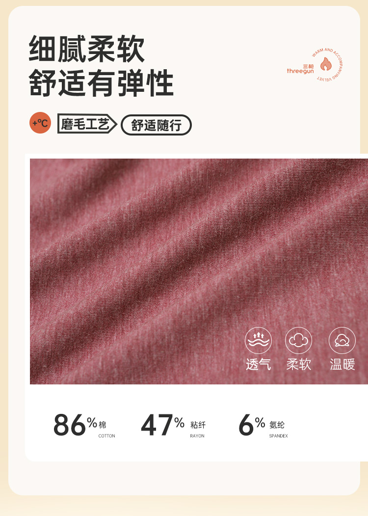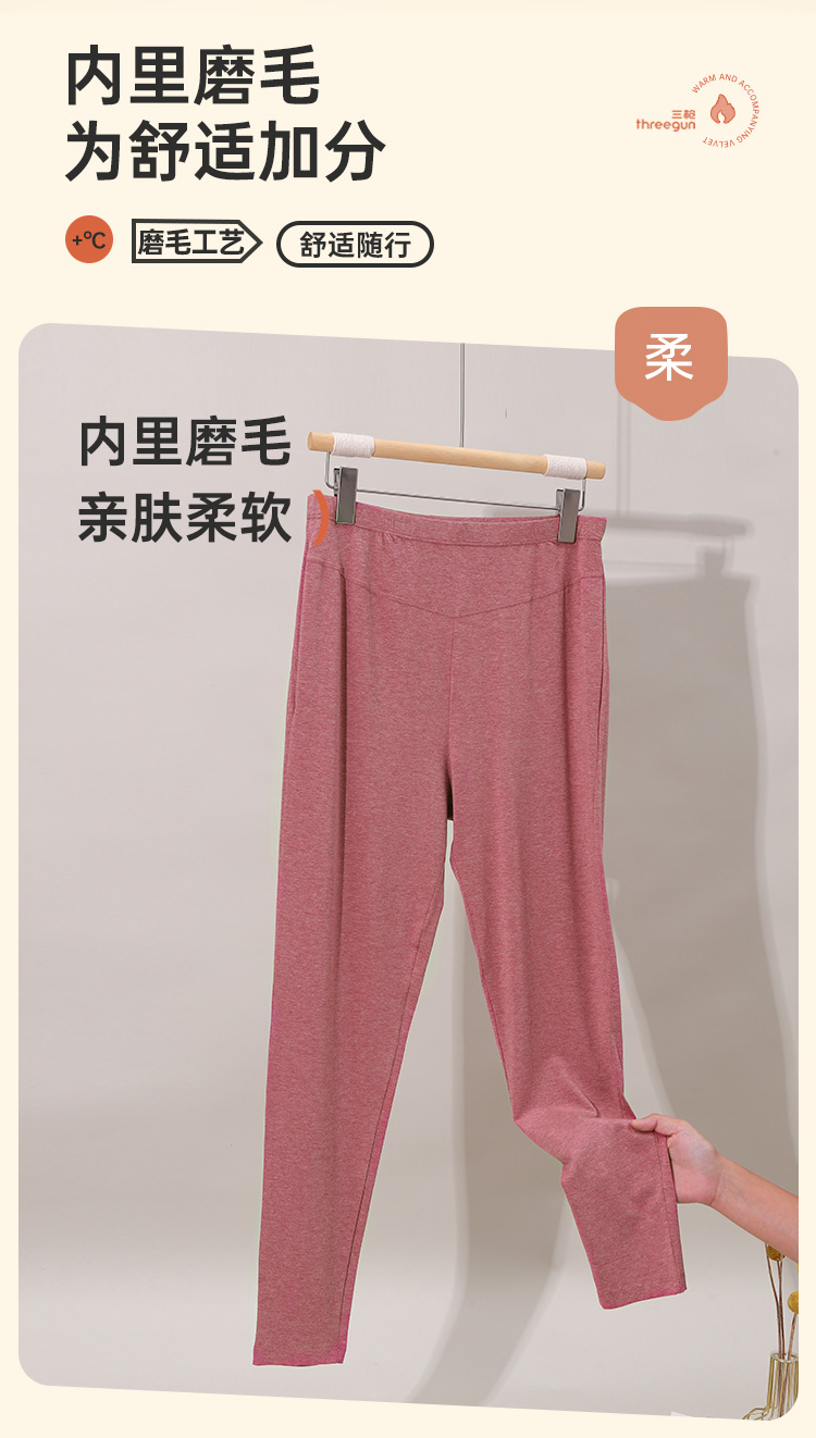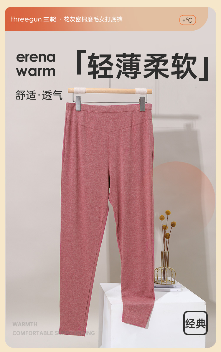 Threegun三枪 花灰密棉磨毛女内衣打底裤-61130B011