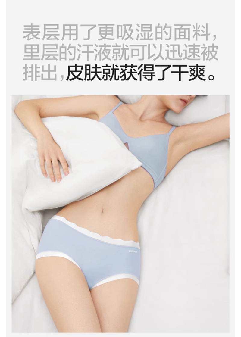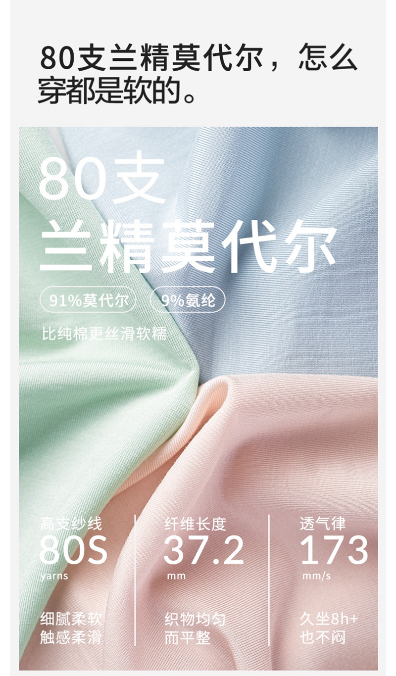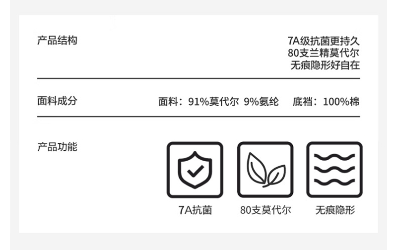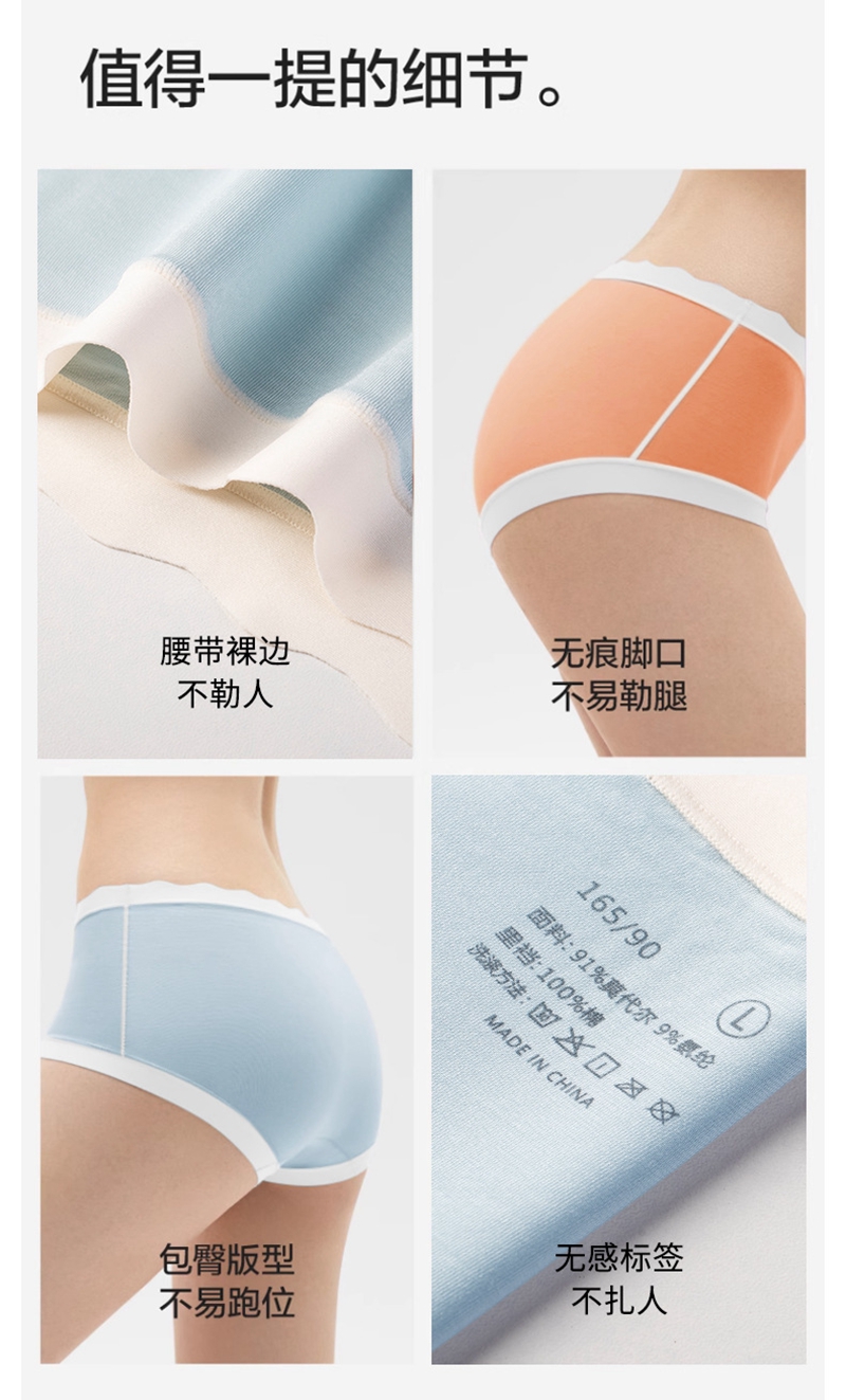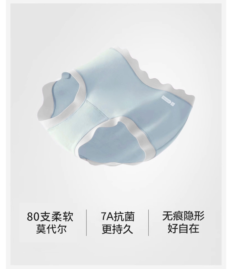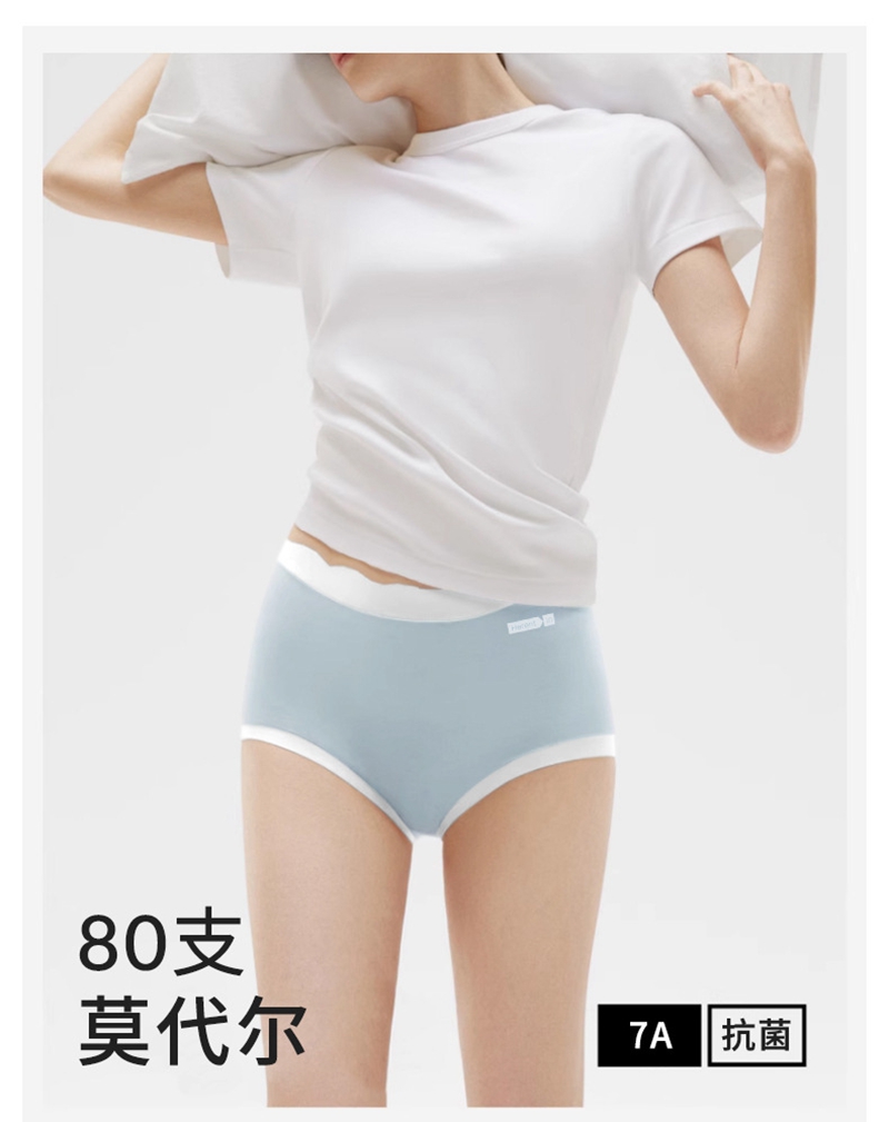 特惠100元/3件 超细80支莫代尔棉薄凉爽舒适纯棉裆抗菌透气中腰无痕女士内裤