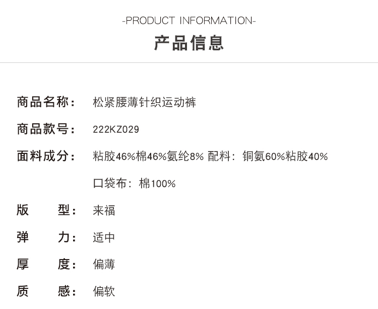 松紧腰薄针织运动裤222KZ029