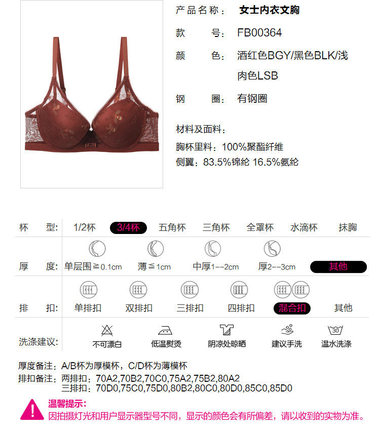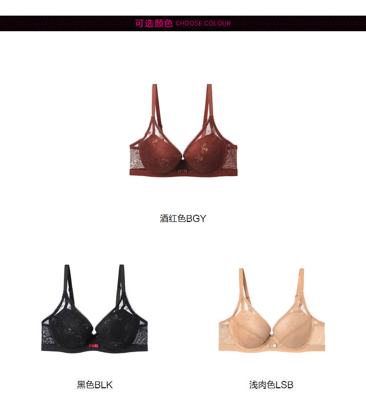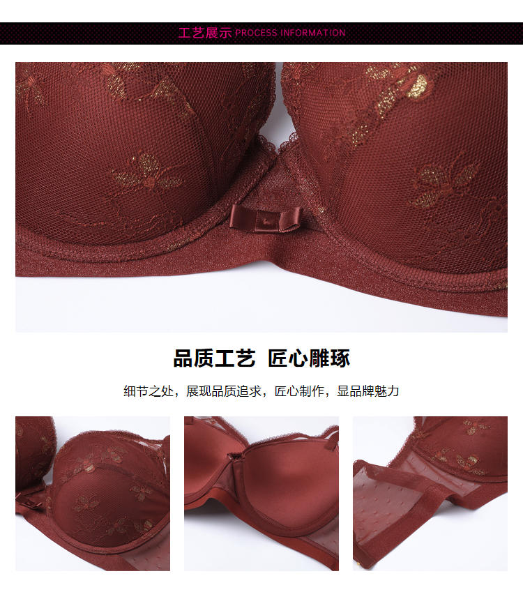芬狄诗性感蕾丝有钢圈舒适集中上托侧收副乳文胸FB00364