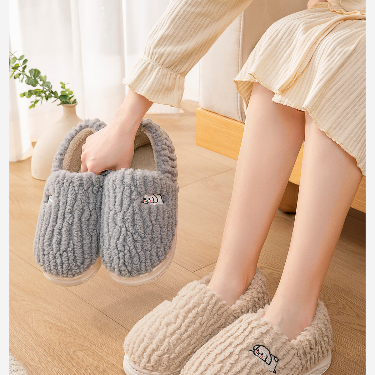 利达妮棉拖鞋女冬季2025新款室内家居包跟外穿防滑保暖毛绒拖鞋男