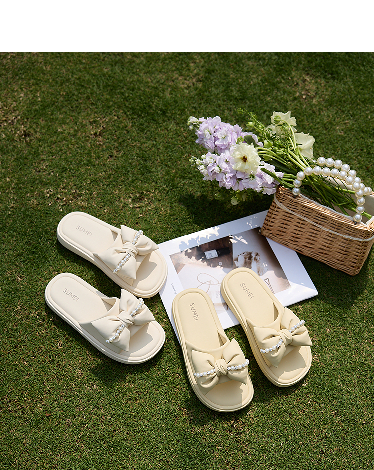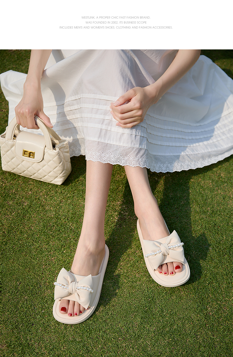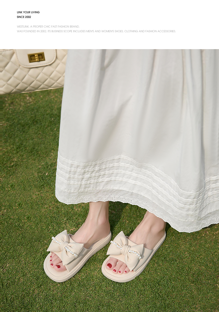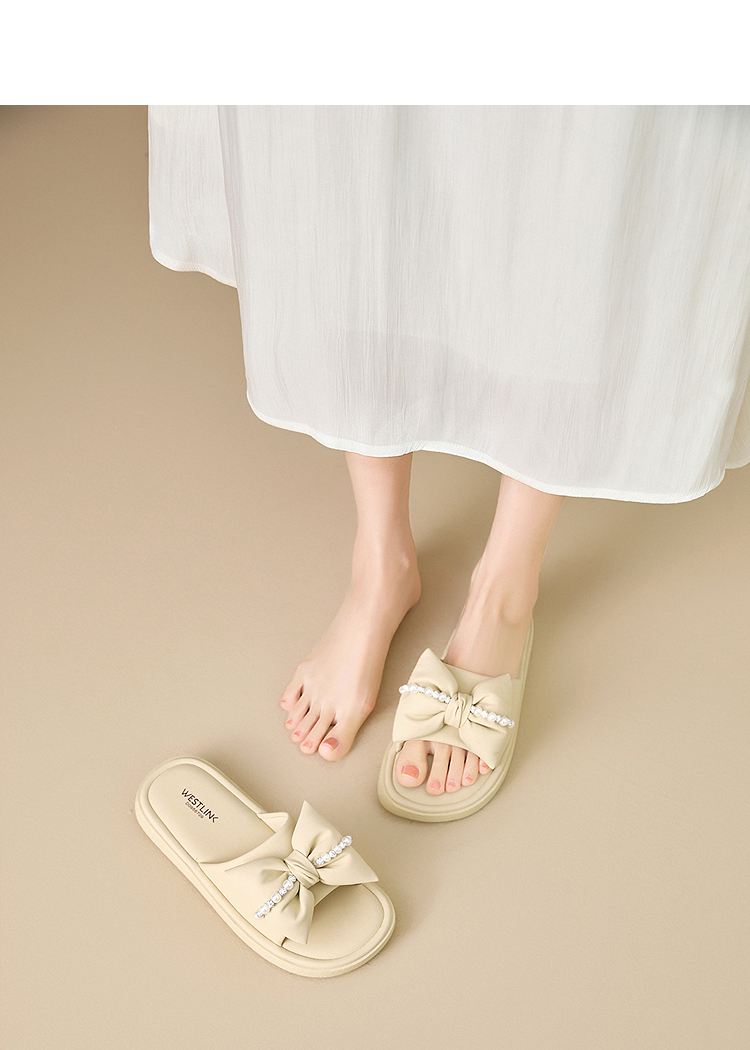 西遇法式小凉拖鞋女夏外穿新款配裙蝴蝶结凉鞋软底平底一字拖D0956709