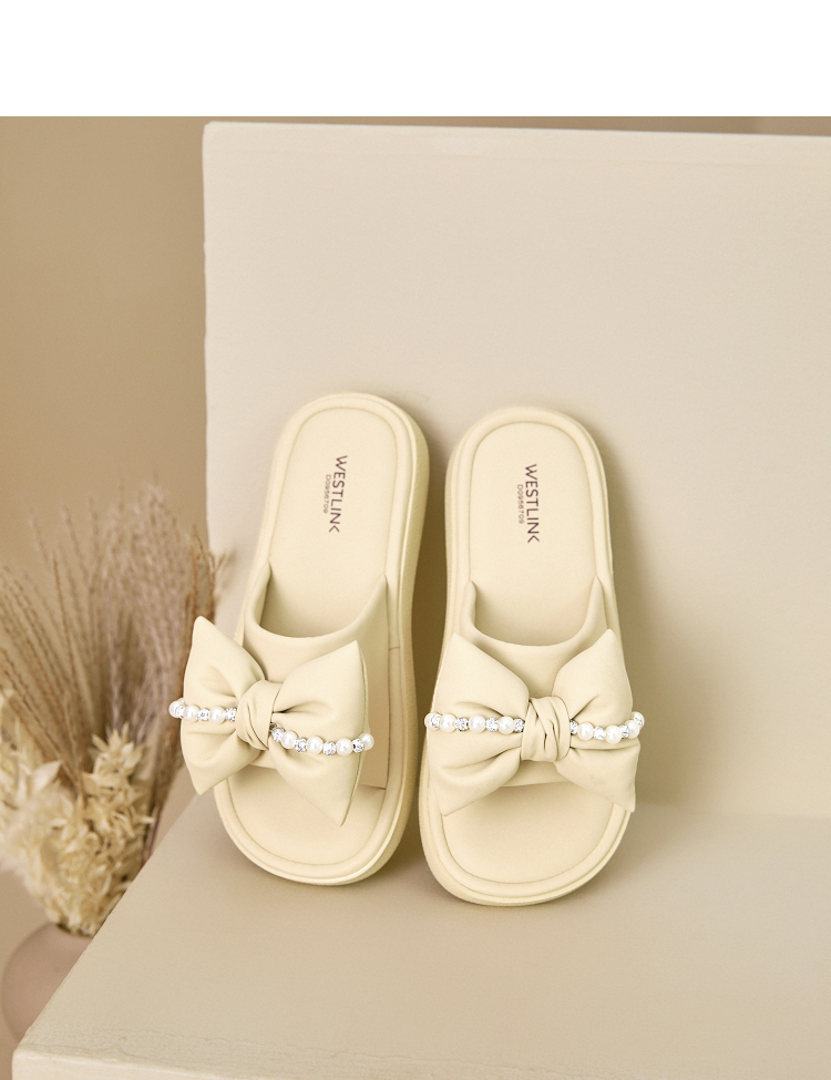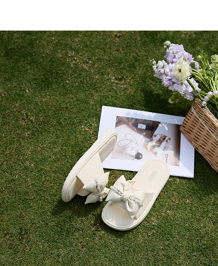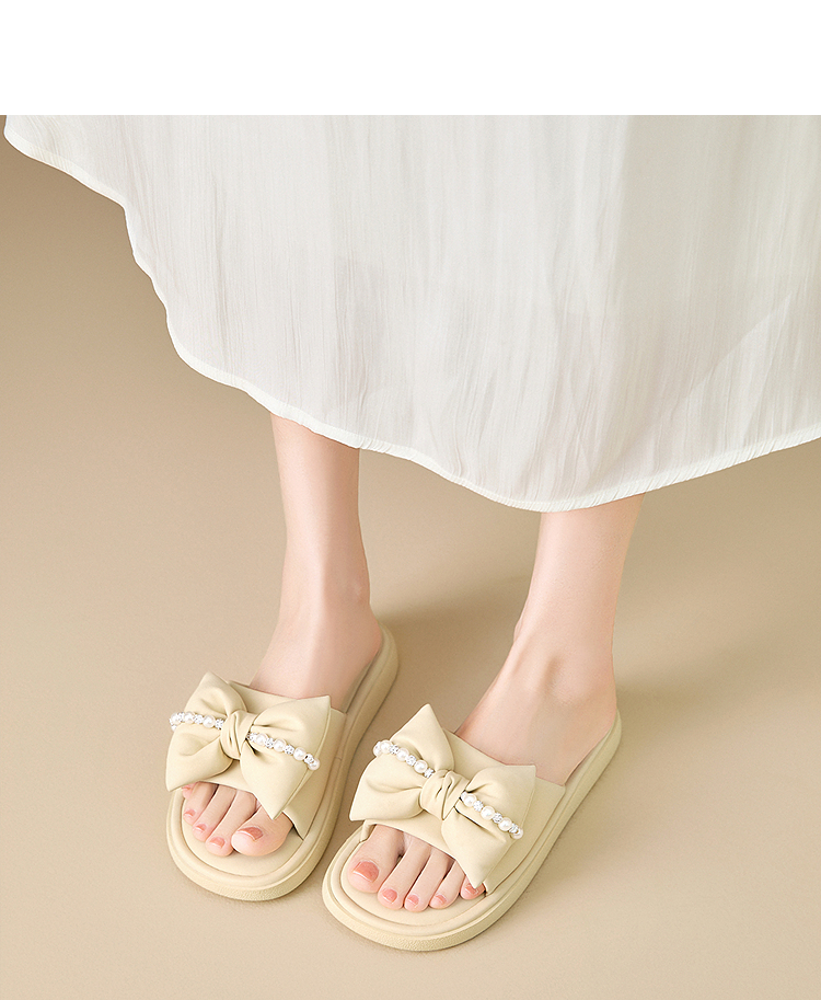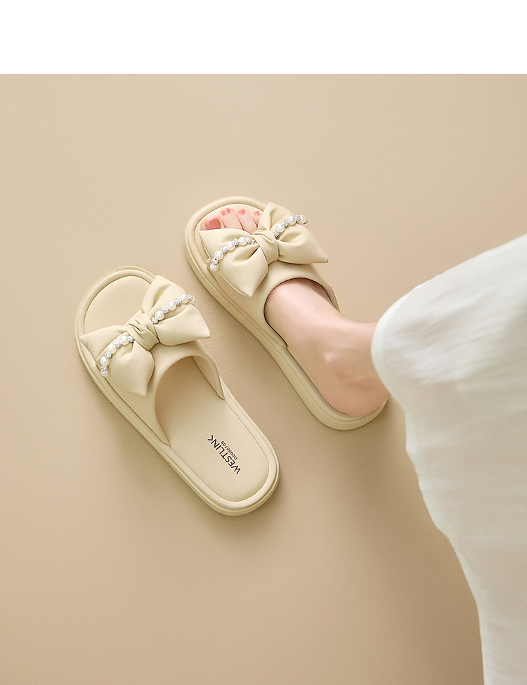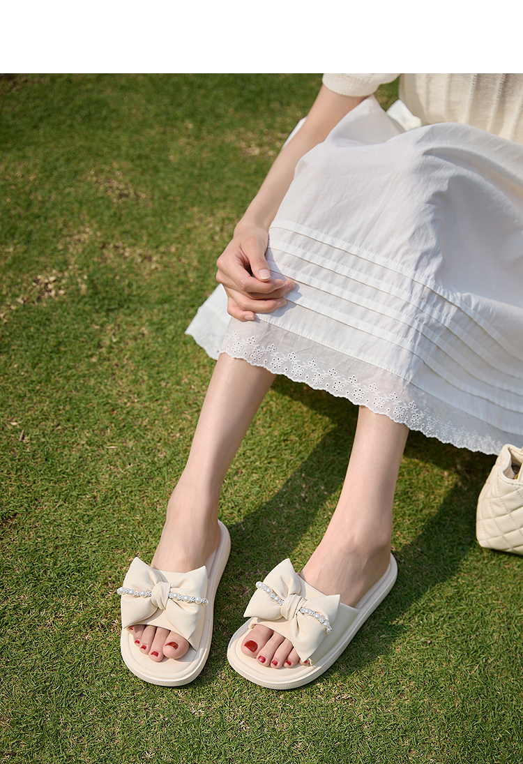 西遇法式小凉拖鞋女夏外穿新款配裙蝴蝶结凉鞋软底平底一字拖D0956709