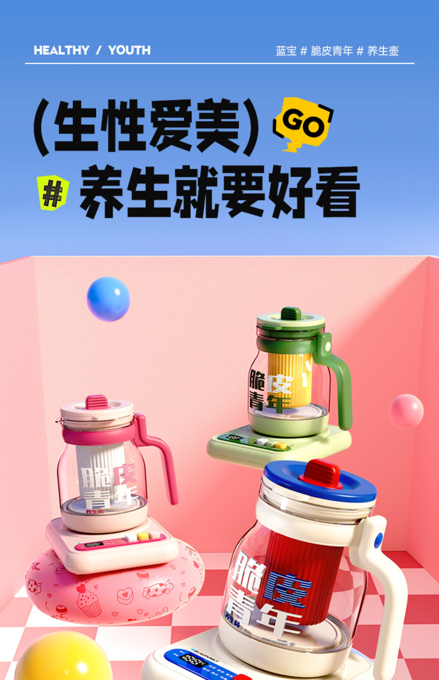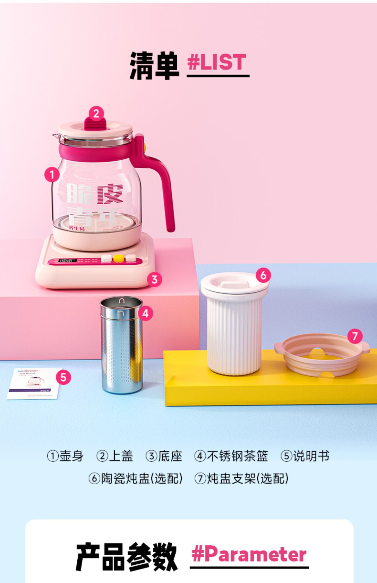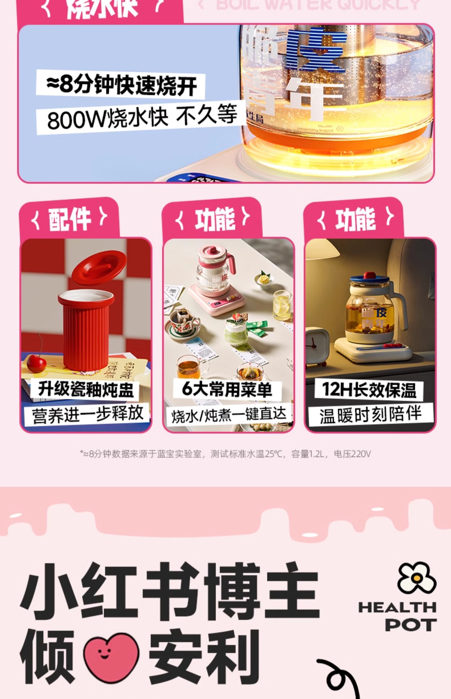 【德国蓝宝养生壶】德国蓝宝ok泡养生壶办公室小型多功能炖煮一体家用烧水玻璃花茶壶