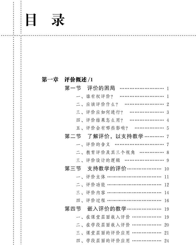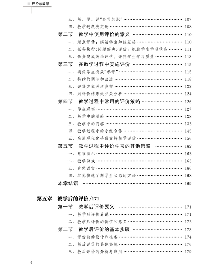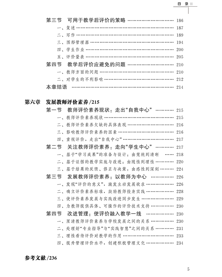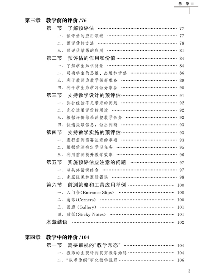 本书在理论与实践的深度结合上,力争体现立足现实、多元开放、促进教师教学评价理念的转变。本书以“评价支持教学"为核心理念,从教师视角分析评价对教学的意义和价值,从“教—学—评”一体化设计、教学前、教学中、教学后等方面提供切实有效的、以评价支持教学的策略,并对教师评价素养提升进行详细阐述。书中包含大量来自一线的生动案例,有利于读者更好地理解相关理念或策略,从传统的学习结果评价,到学习过程与学习结果并重的评价;从关注学生知识和技能的掌握,到同时关注学生认知策略及情感态度的发展;从以纸笔测验为主,到真实情境中的评价。