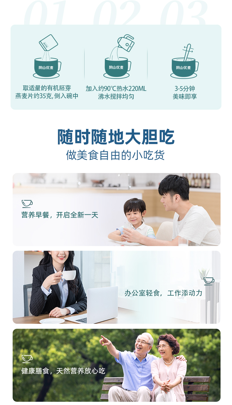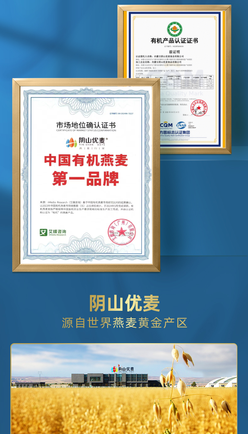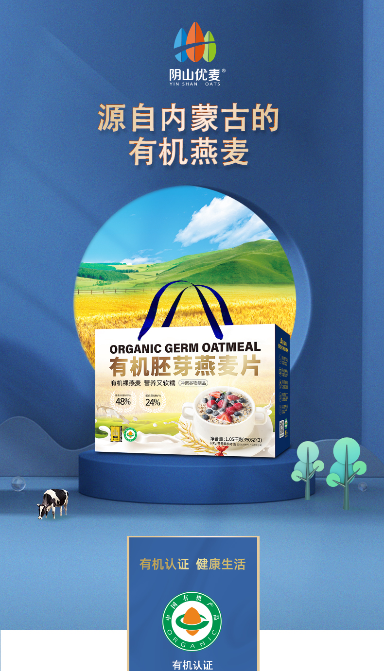 【自营】阴山优麦 有机胚芽燕麦片1.05kg(350g*3桶)