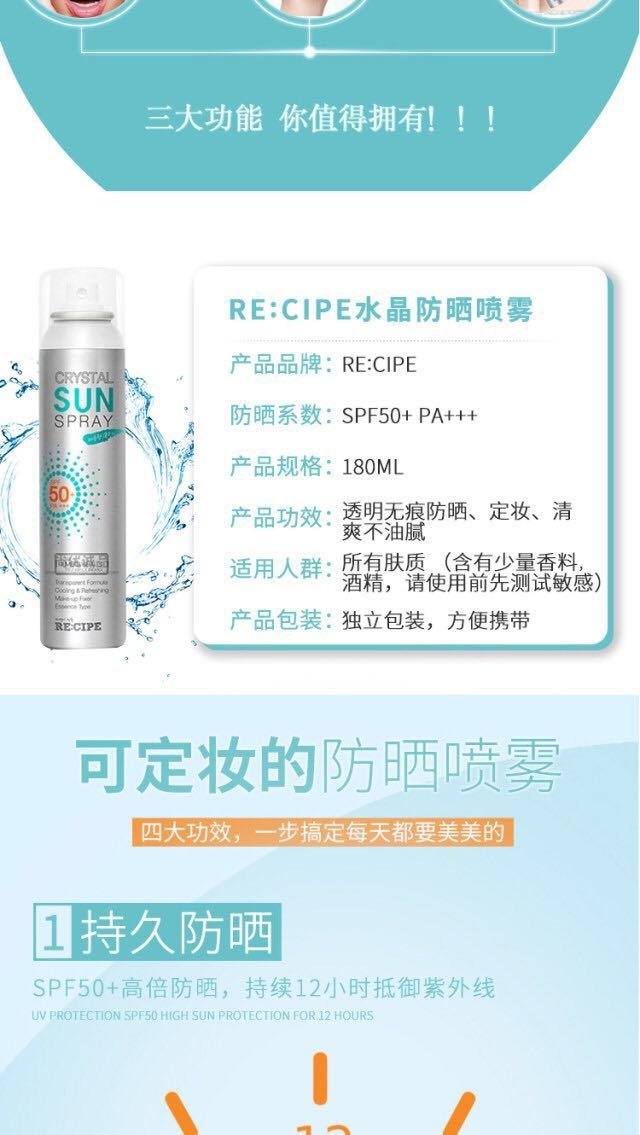 玥之秘水晶防晒喷雾 SPF50+ PA+++180ml