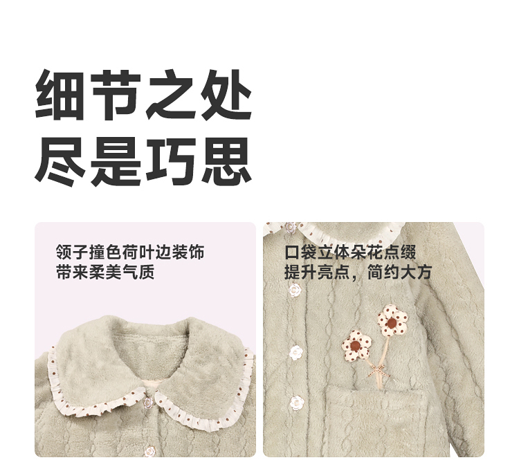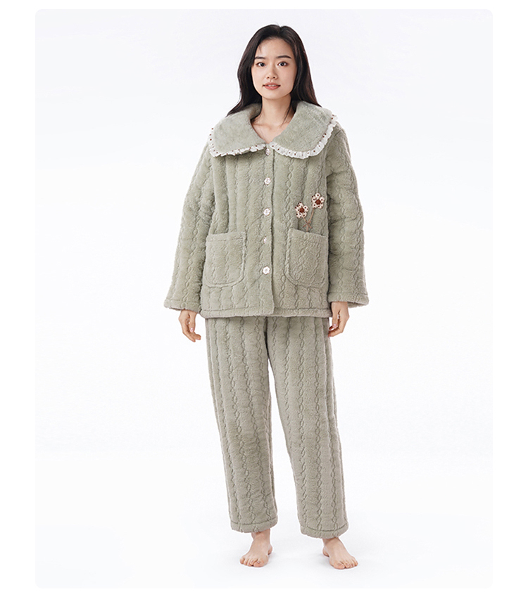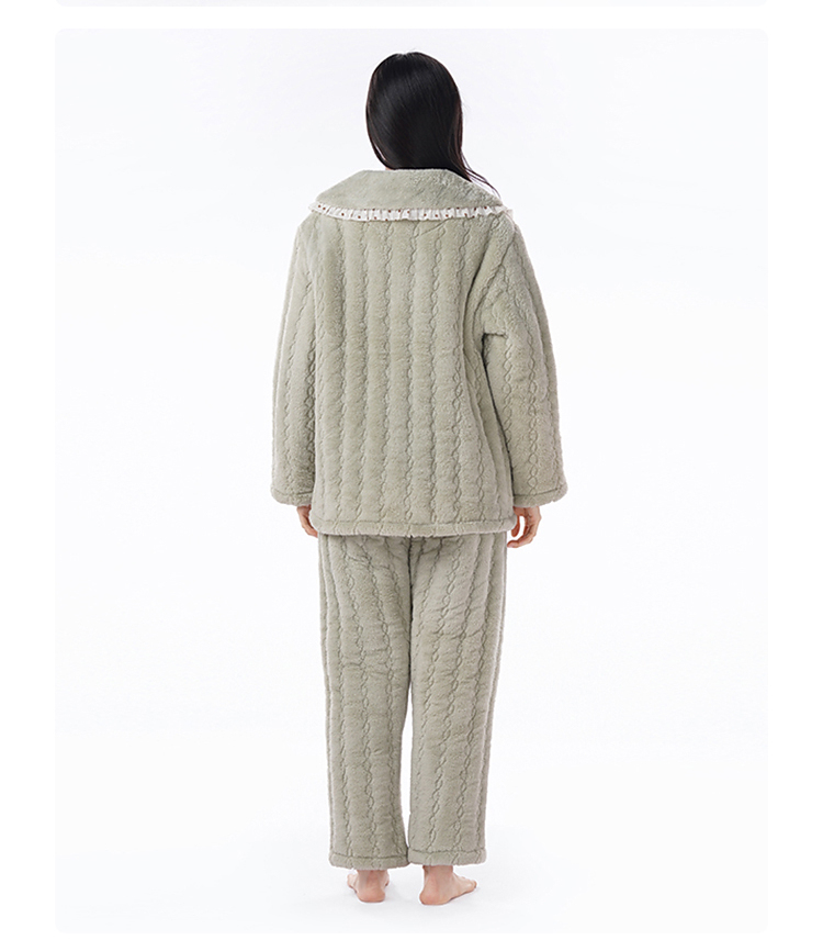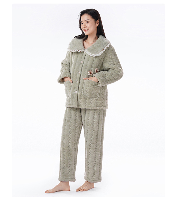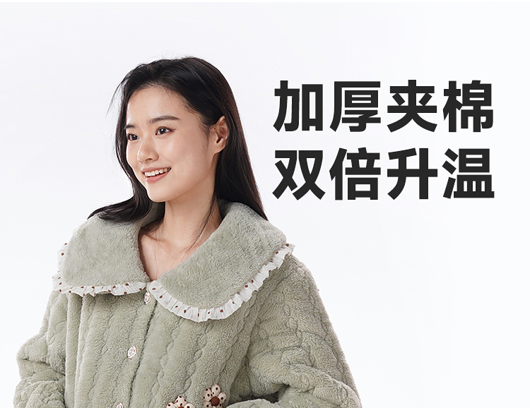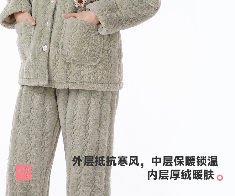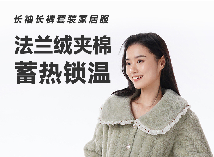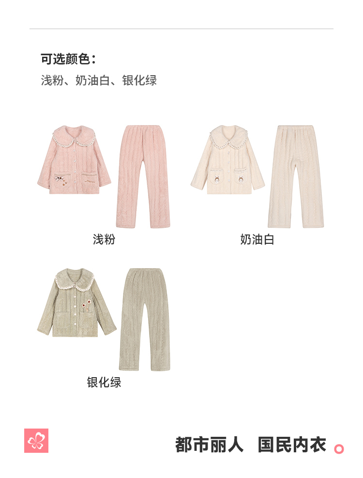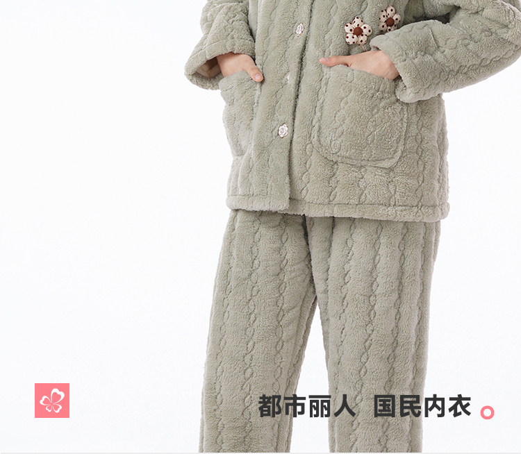 都市丽人女士睡衣女装法兰绒家居服长袖长裤加厚夹棉套装LHH1P3