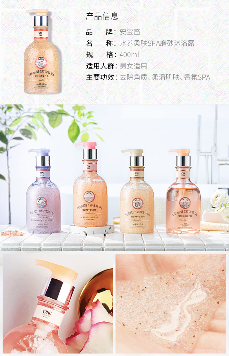 安宝笛水养柔肤海盐磨砂沐浴露400ml